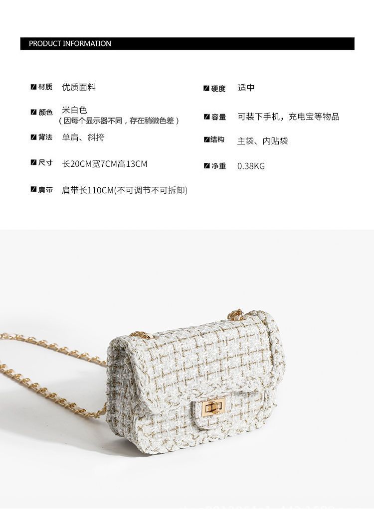 クロスボーダーの小さな香りのウールバッグ、レディースバッグ、ファッショナブルで人気のある韓国スタイルのファッショナブルで多用途なチェーンショルダークロスボディバッグ