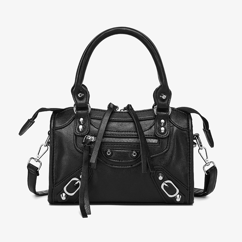 ニッチデザインのフレンチファッション、スタッズ付きバイカーバッグ、ABG系セクシーな高級大容量ショルダー/クロスボディ/ハンドバッグ
