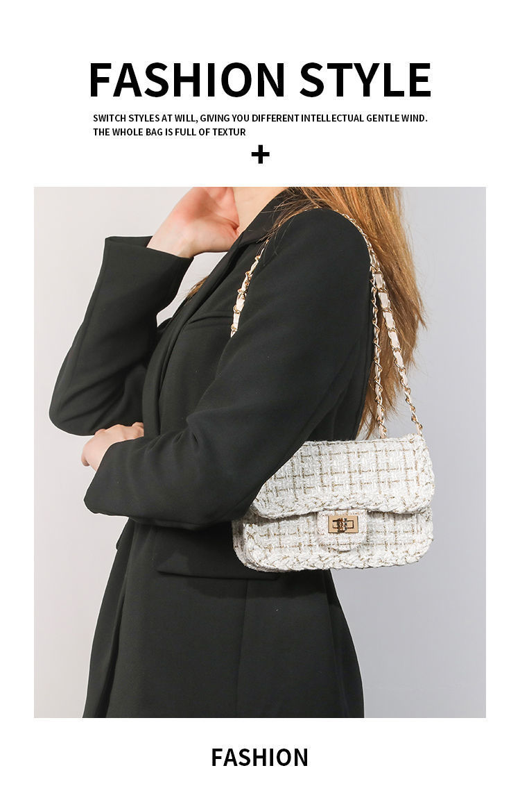 2025年春秋新作女性脇下包み小香風ラシャチェーン包み高級感ワンショルダー斜め掛け小角包み