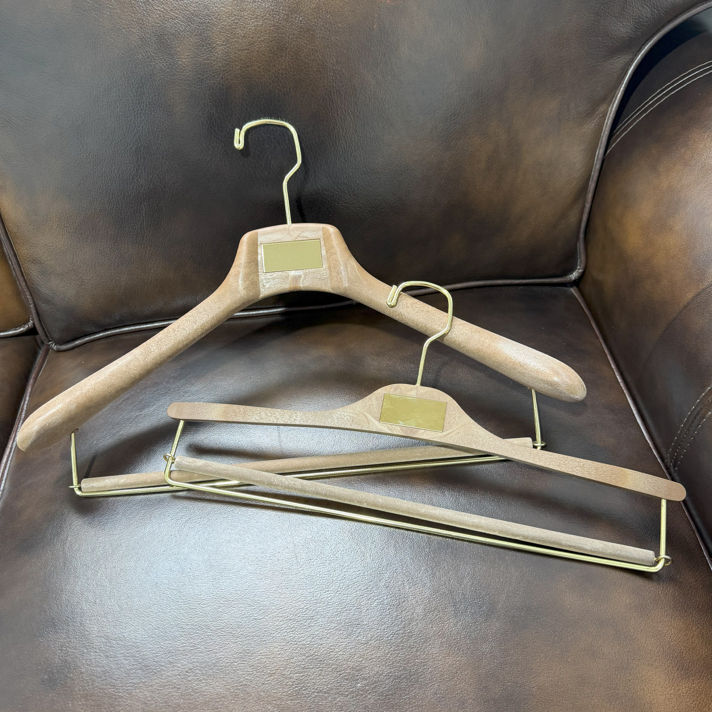 高端树脂仿胡桃木色男士铁牌西服装店专用衣架裤架夹撑子定制logo