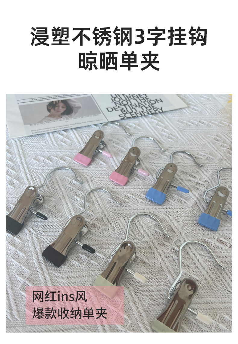 現代シンプル多機能ステンレス干しクリップ家庭用寮ズボン靴下3字フック干し収納クリップ