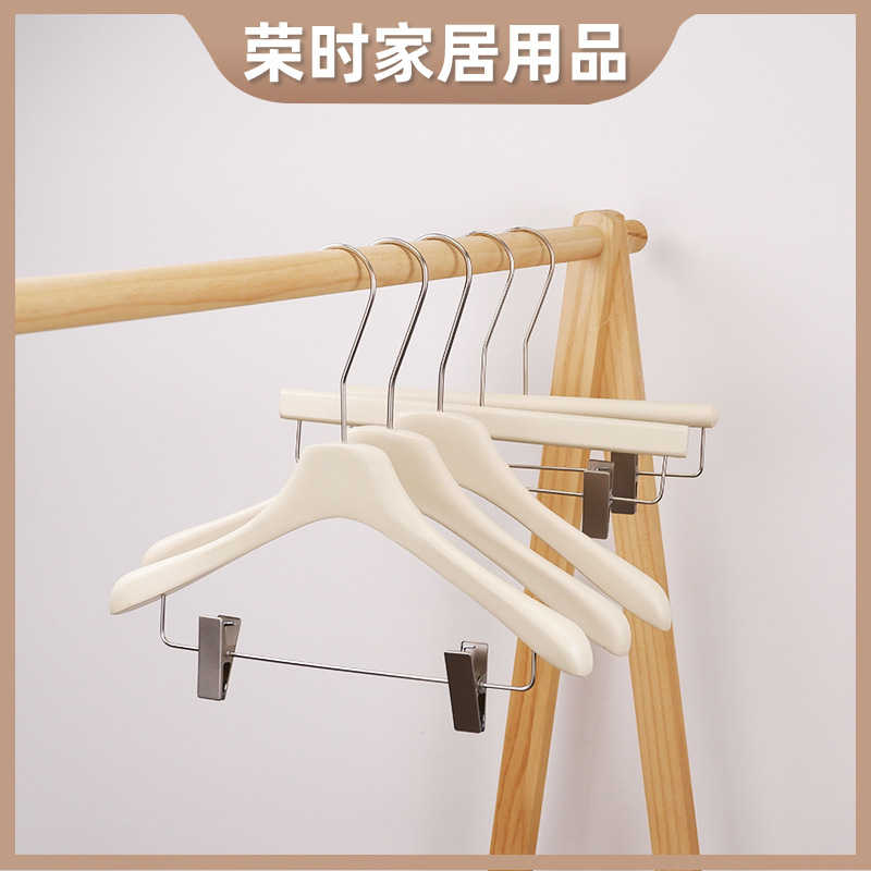 工場卸売乳白色衣類ハンガー、ネット人気の軽奢韓国風ファッション婦人服店専用無垢材衣類ハンガー