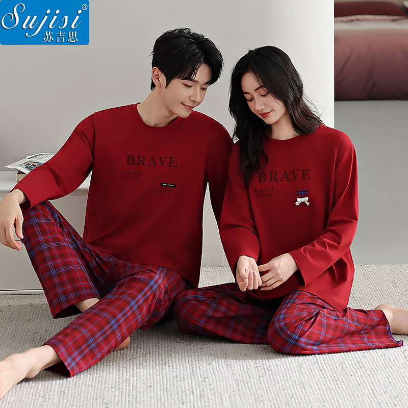 情侣结婚本命年大红色睡衣秋冬春新款圆领长袖套装家居服可外穿男