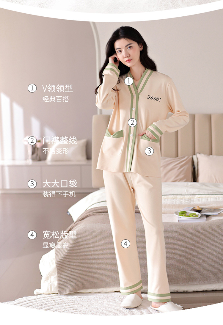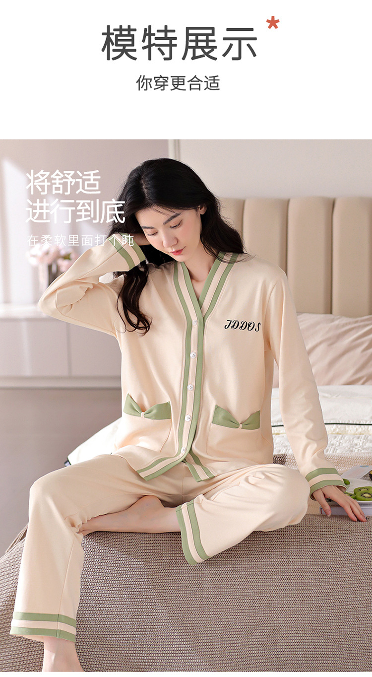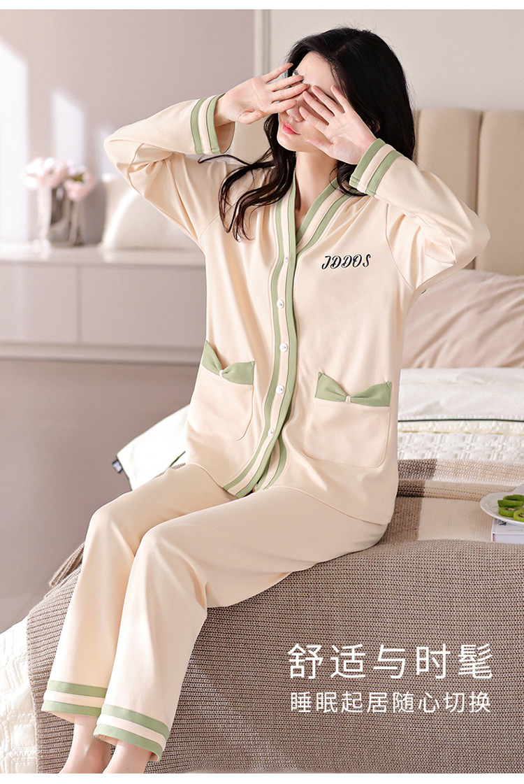 春秋レディース純綿パジャマ月子服ホームウェアカーディガン長袖長ズボン妊婦授乳授乳セット