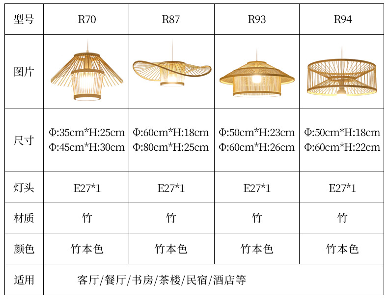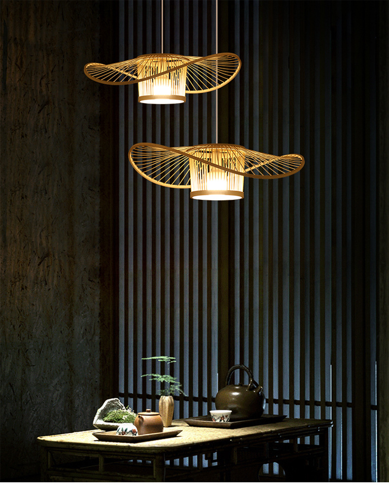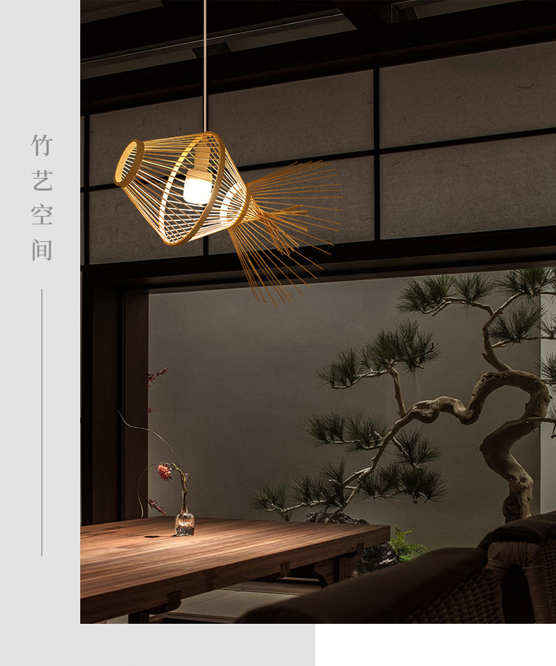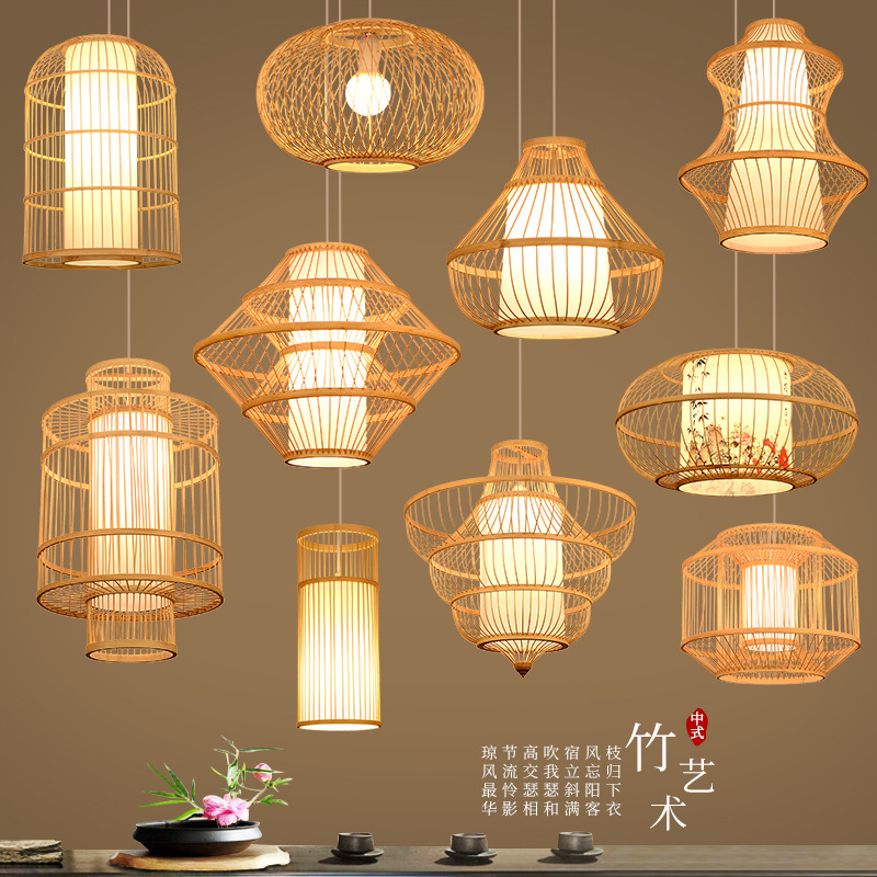 新中国式模造古創意竹編提灯茶室レストラン火鍋店日本式レトロ禅意竹芸シャンデリア