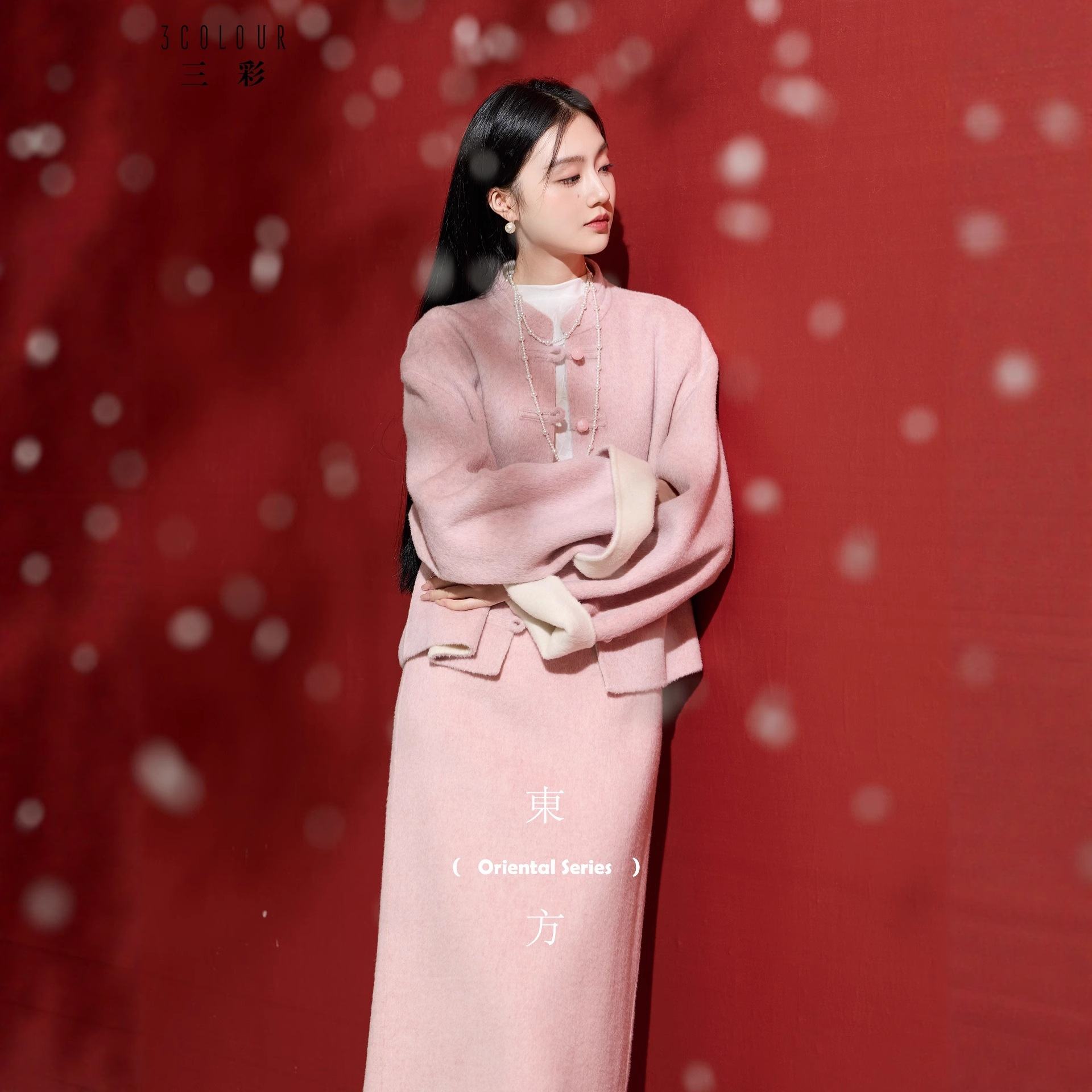【100绵羊毛】三彩2025冬季新款新中式双面毛呢字大衣外套短女C
