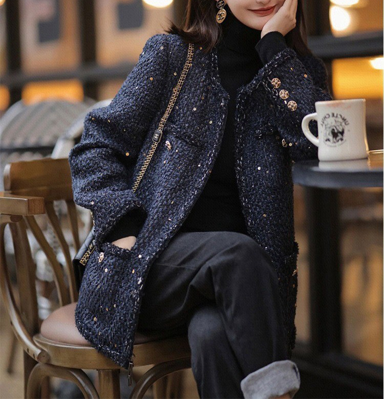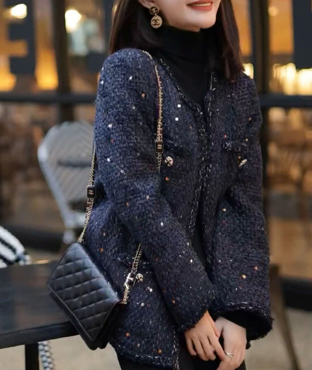 2935大码女装网红爆款粗花编织小香风毛呢外套胖mm半身裙套装