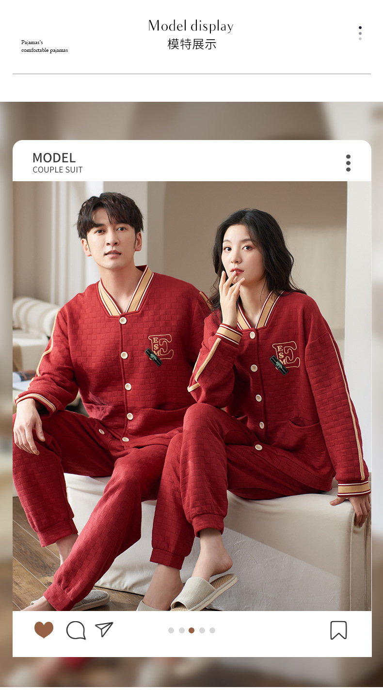 カップルパジャマレディース春秋プルオーバーコットン長袖新作カーディガン大きいサイズコットンルームウェア秋冬天セット