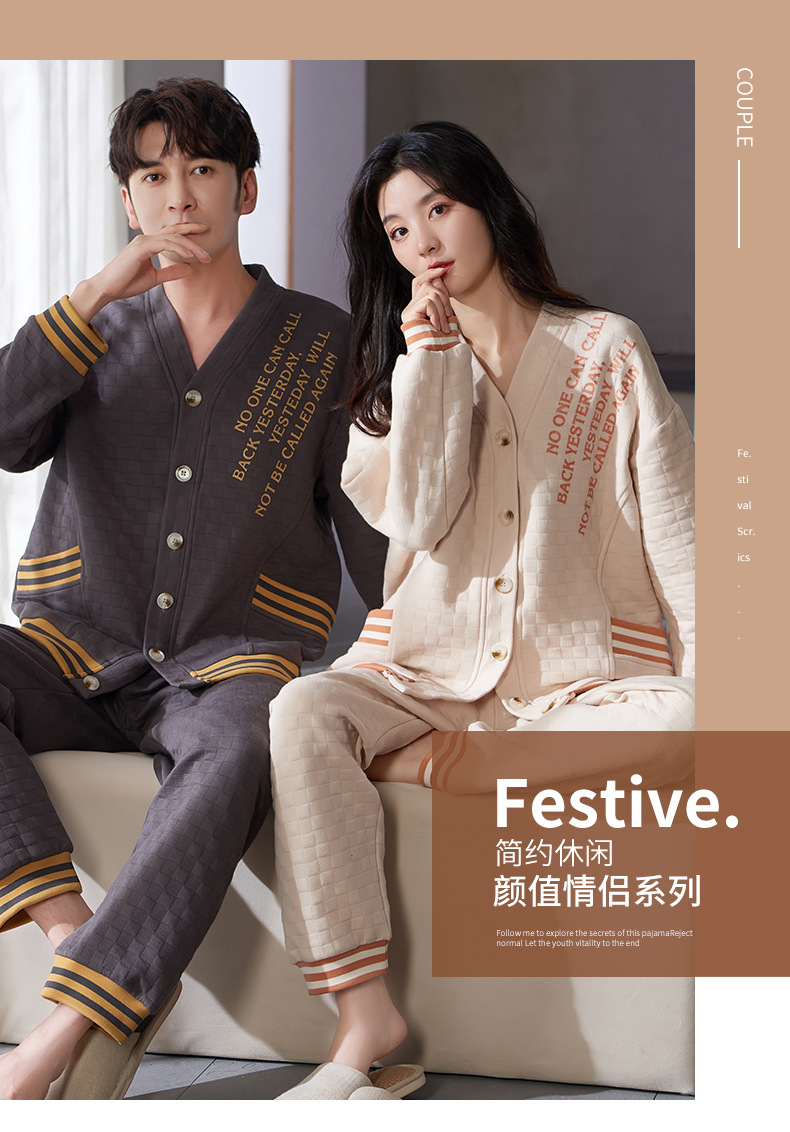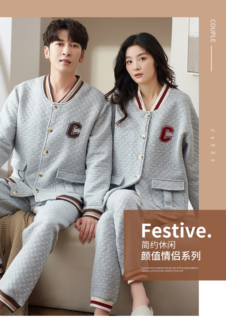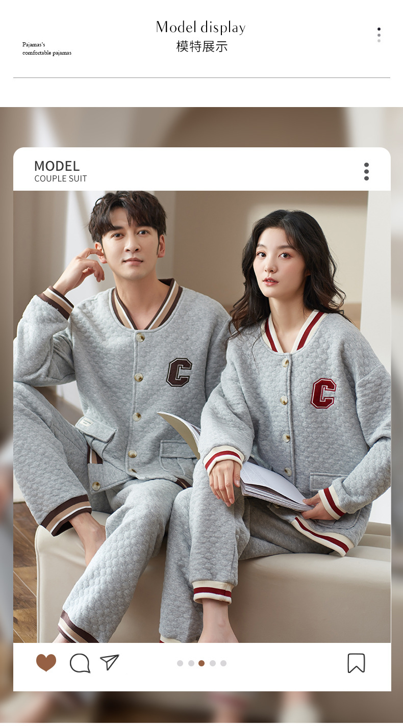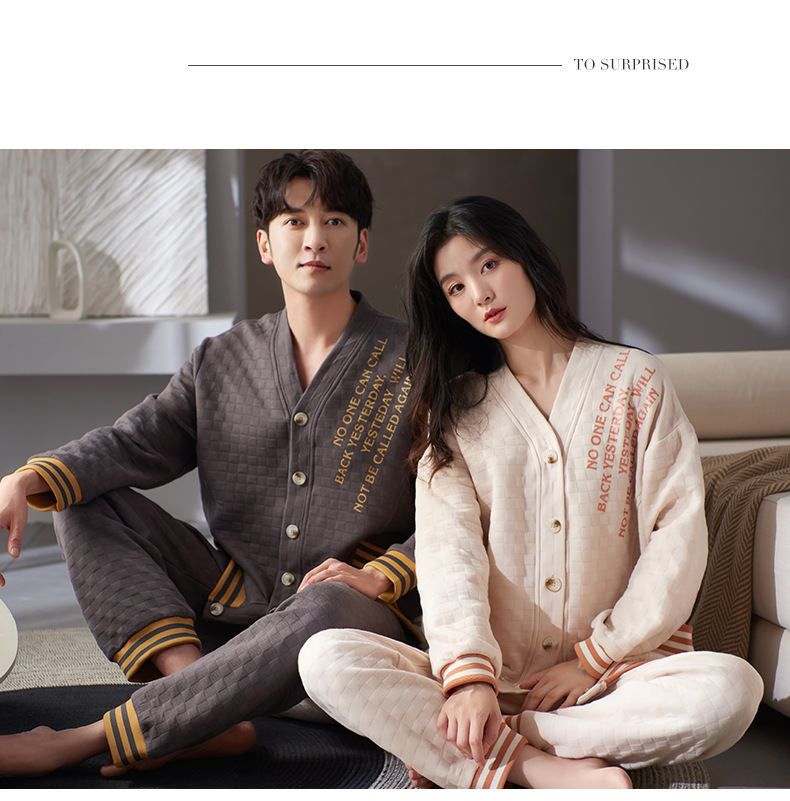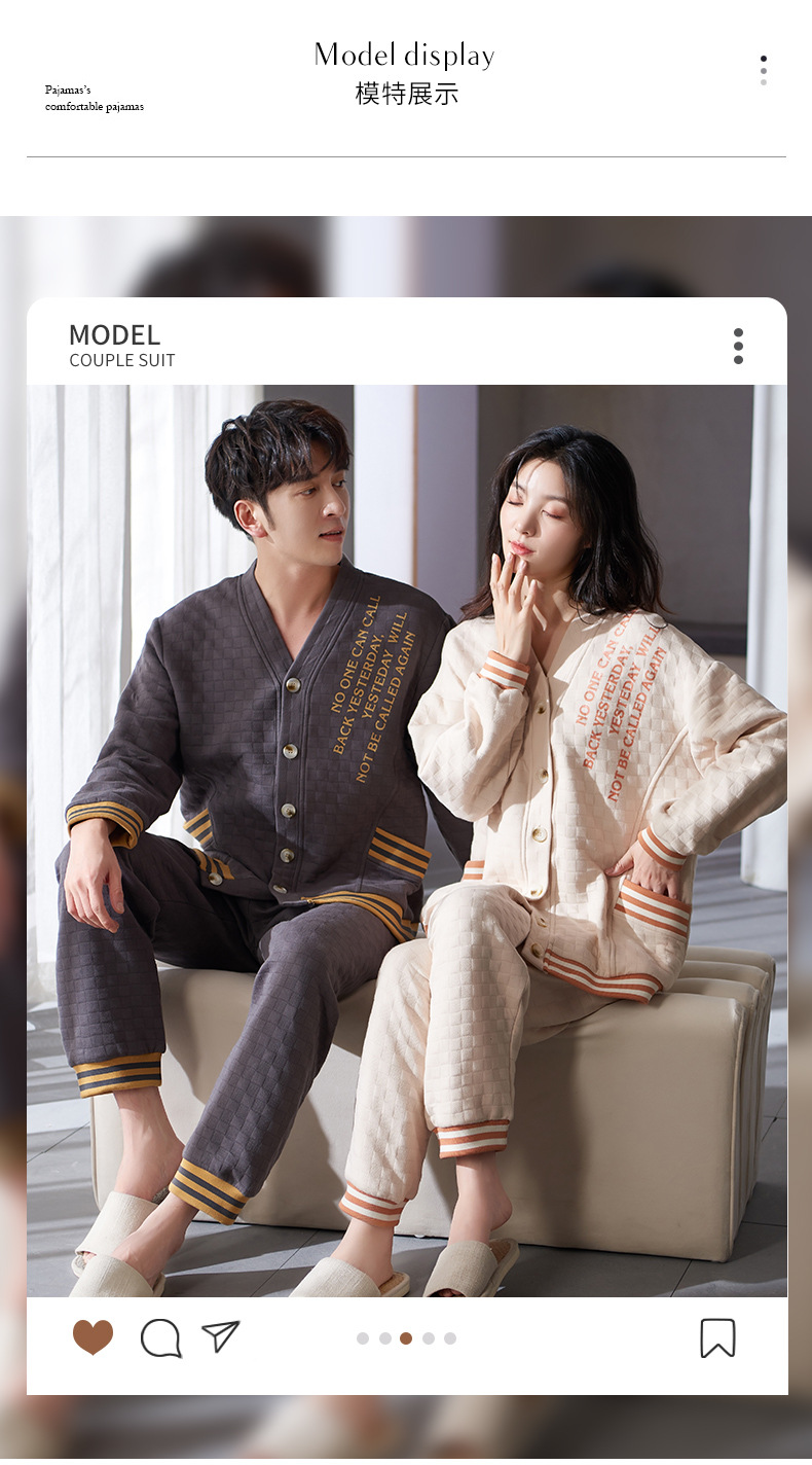 冬のカップルのパジャマの新型vネックのカーディガンの純綿の保温の3層の中間層は外に女性の長袖の部屋の服を着ることができます。