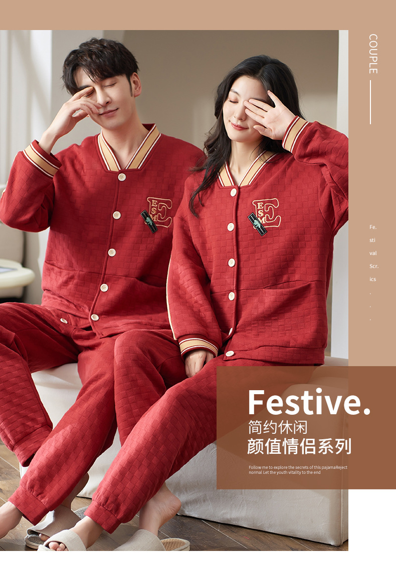 三層の厚いベルベットと綿のカップルのパジャマ冬の赤い結婚本命年は家庭服のスーツを着ることができる