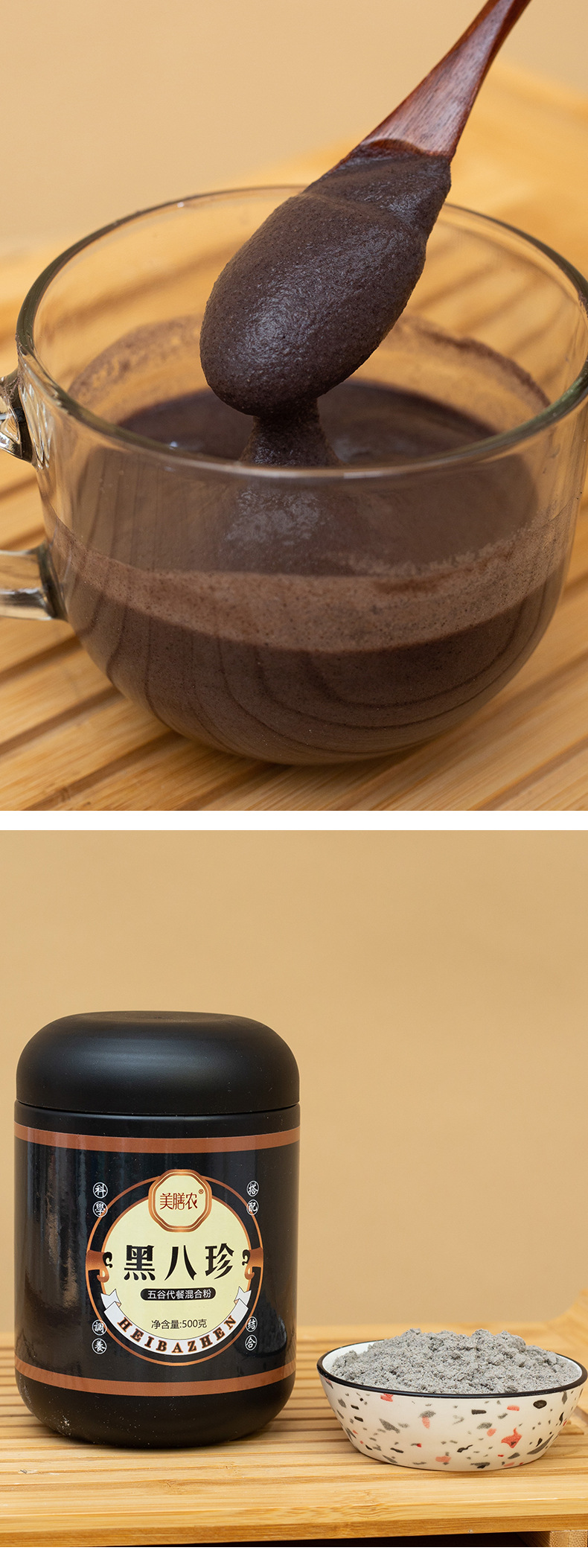 美粥食客黒八珍粉黒豆黒米黒ゴマクルミ糊超微微微微研磨代食朝食