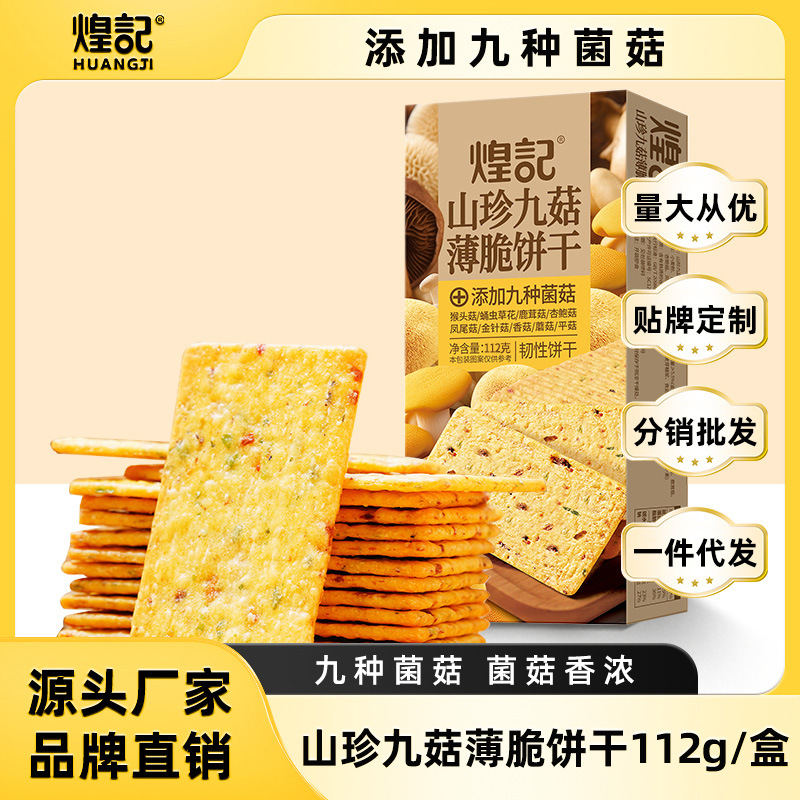 煌記新商品山珍九茸薄脆いビスケット112g箱の強靭性ビスケット事務室のネットの赤いお菓子の現物