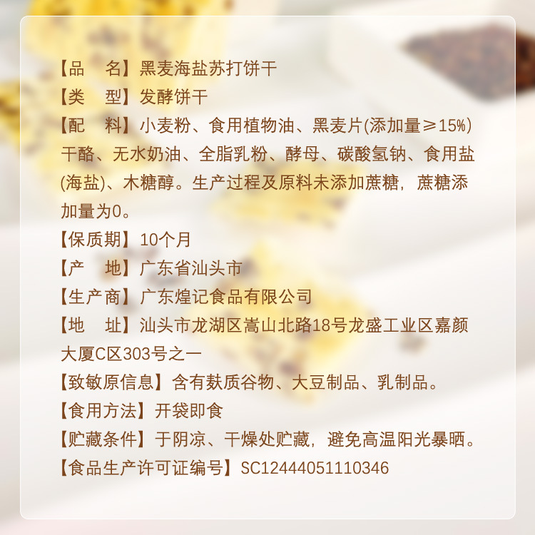 煌記黒松露ハムソーダクッキー156g砂糖なしアカザ麦塩味間食午後茶メーカー卸売り