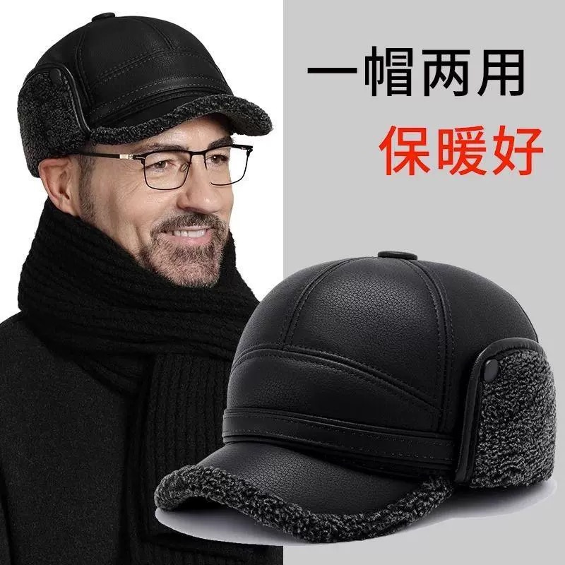 中高年帽子皮帽男性冬老人鴨舌帽おじいさんお父さん保温野球耳保護ベルベット老人帽