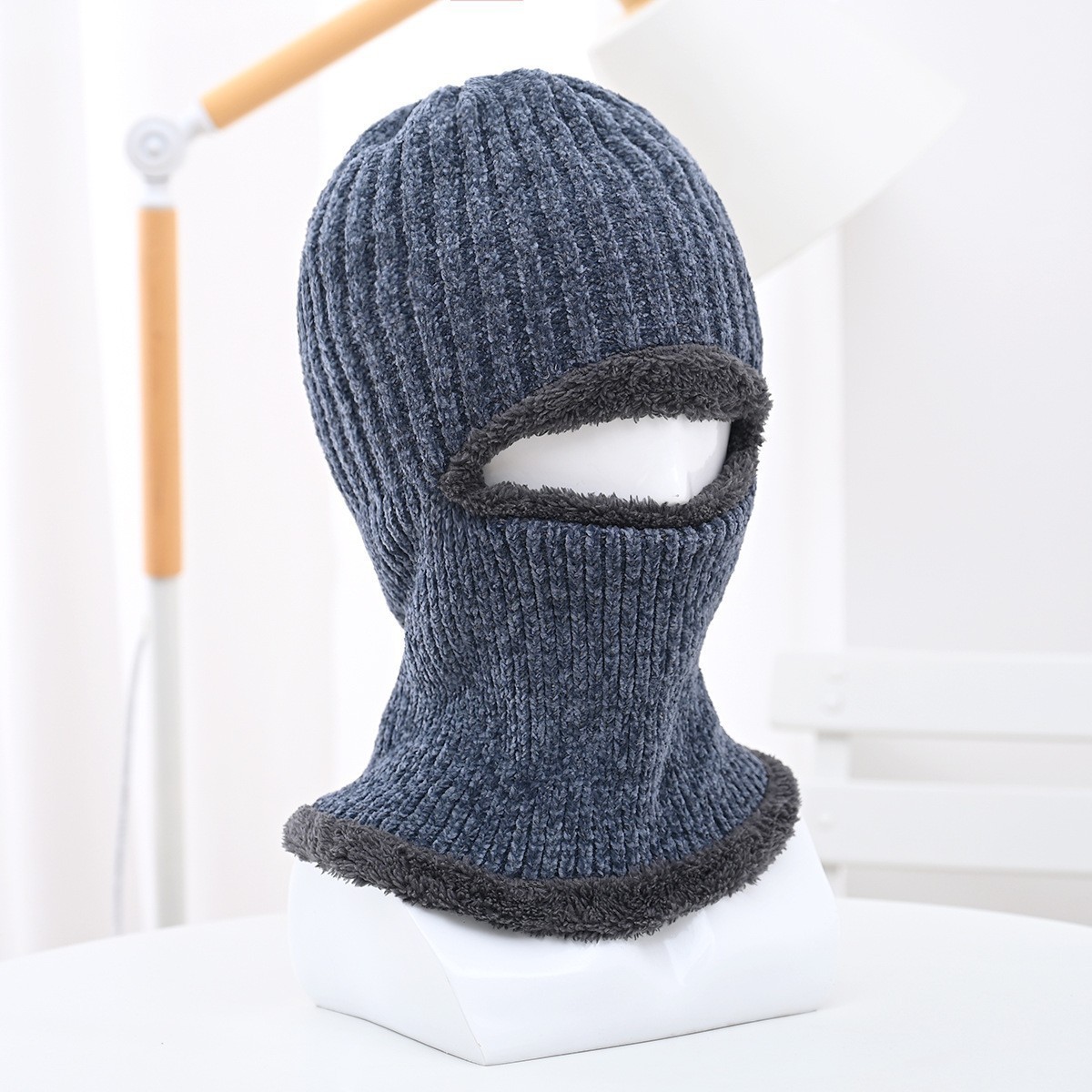 冬の男性帽子屋外自転車防寒ベルベット保温ニット帽耳保護首カバー一体毛糸帽