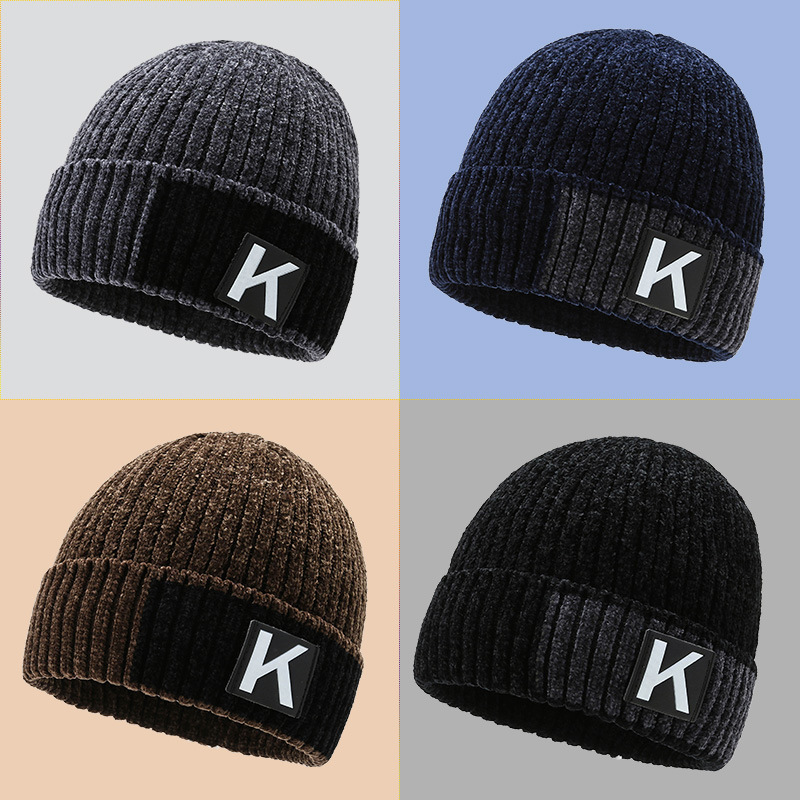 帽子メンズ冬アウトドア防寒プルオーバー毛糸キャップ学生ベルベット保温シェニール耳保護ニット帽子潮