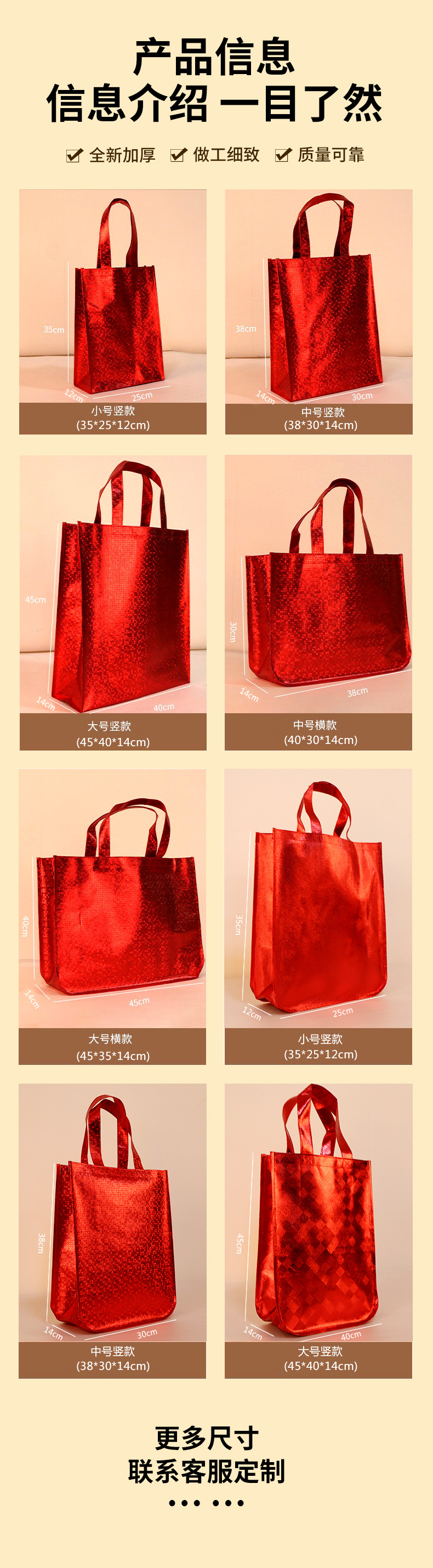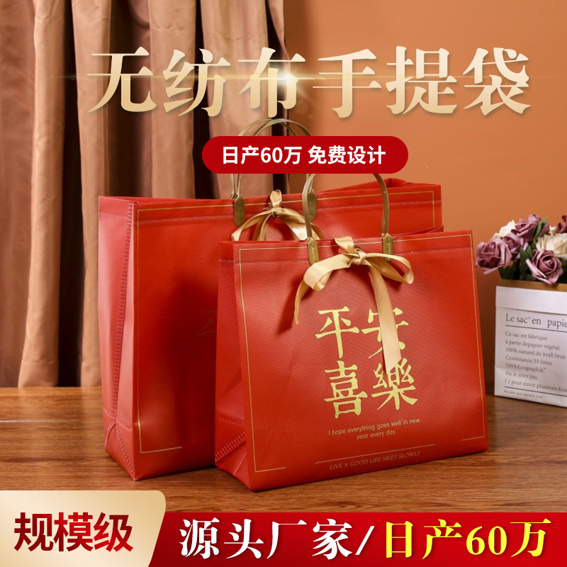 不織布覇膜手提げ袋赤色プレゼント祝日プレゼント旧正月新年結婚式防水手提げ袋プレゼント袋