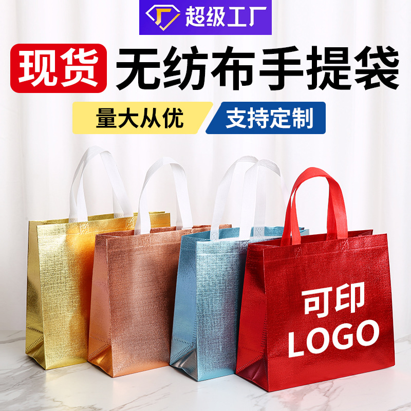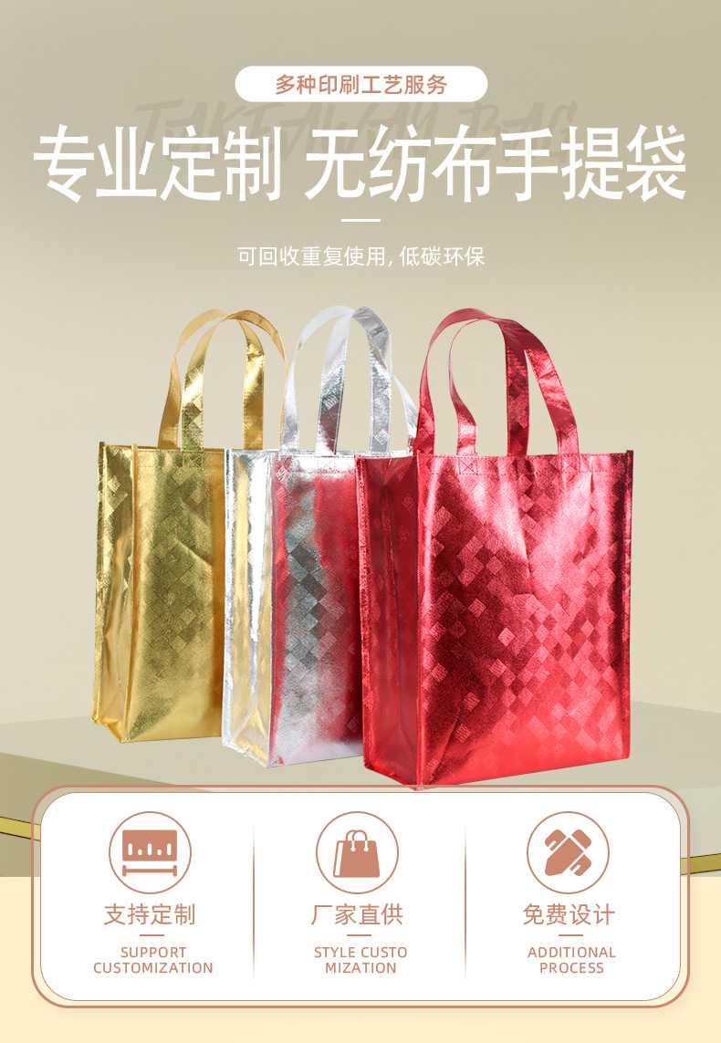 レーザー被膜レジ袋アルミメッキ車縫い不織布手提げ袋お祝い新年ギフトバッグは多色ロゴを印刷できます