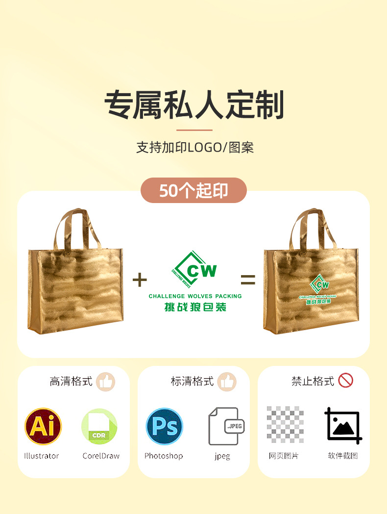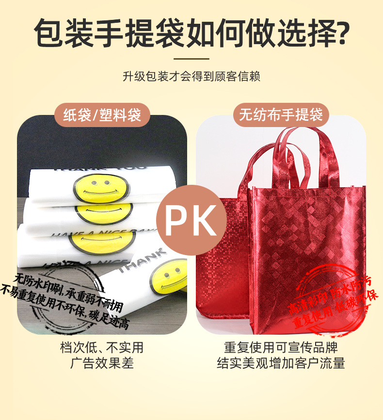 覇膜不織布手提げ袋服装店ファッション環境保護レジ袋カスタマイズ可能サイズカラー印刷パターン