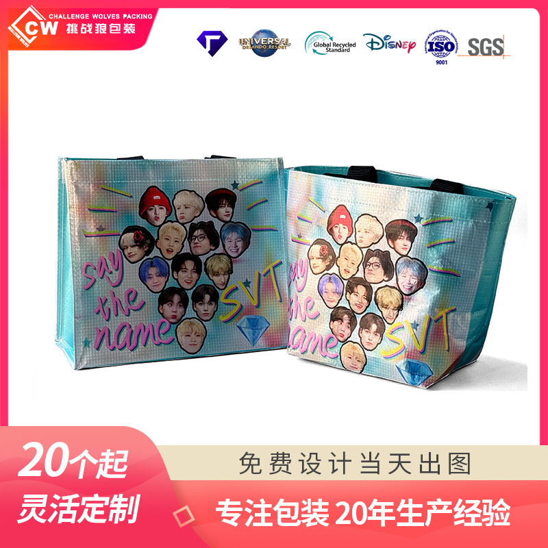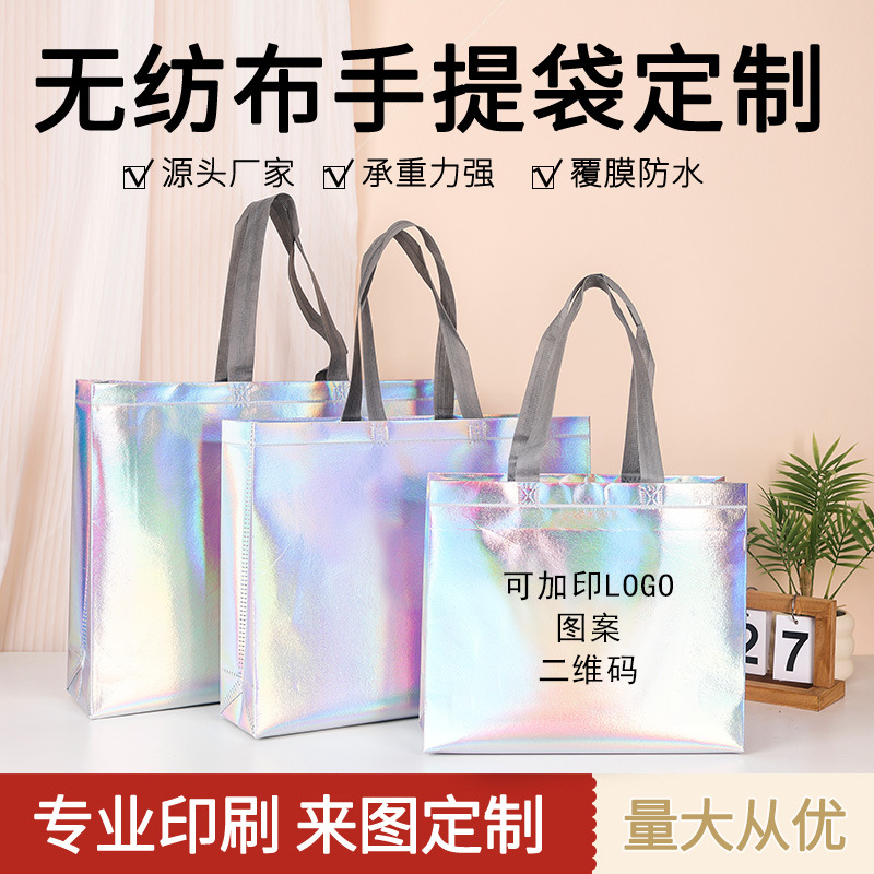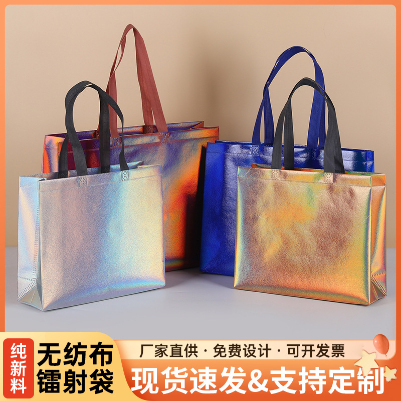网红防水炫彩镭射覆膜无纺布袋服装店礼品包装袋手提购物袋子定制