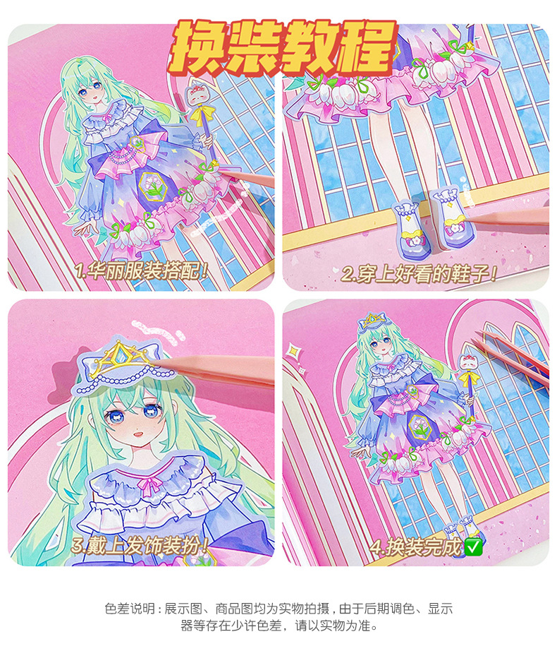 萌え柚姉妹着せ替えステッカー本子供知育玩具少女心王女シール古風人形着せ替えステッカー