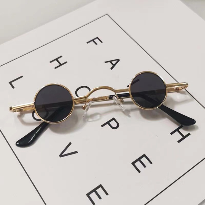 超小枠円形復古サングラス男女モデルミニ小円枠台子鏡漢奸眼鏡ヒップホップサングラス