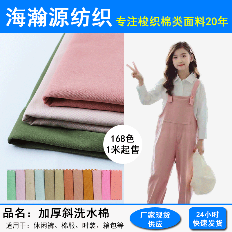 全棉粗斜纹霜花洗褪面料300g梭织彩色牛仔布秋冬休闲棉服外套面料