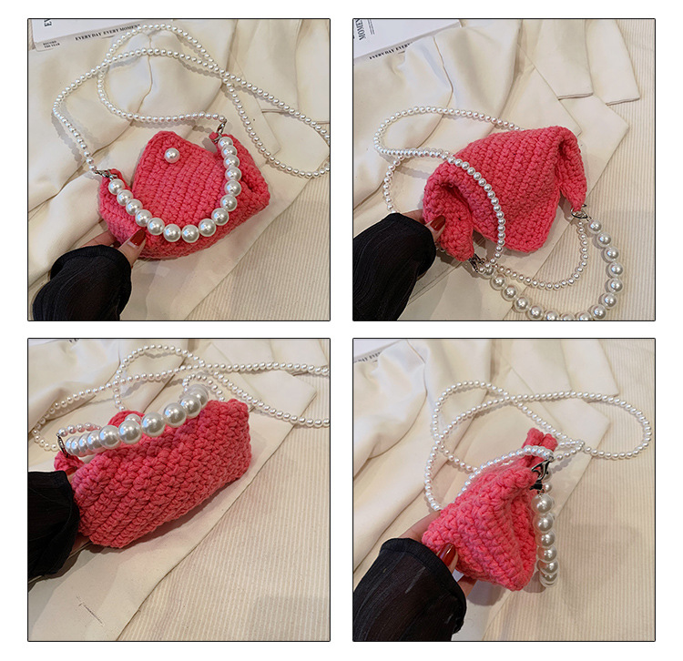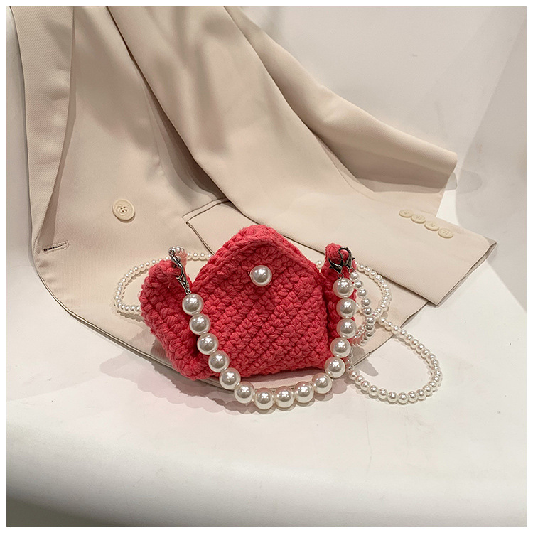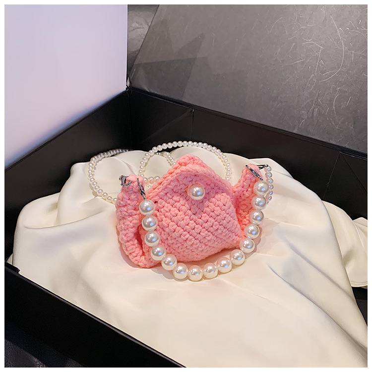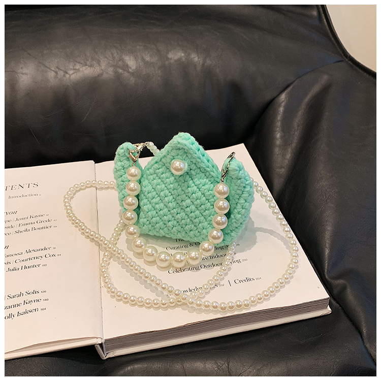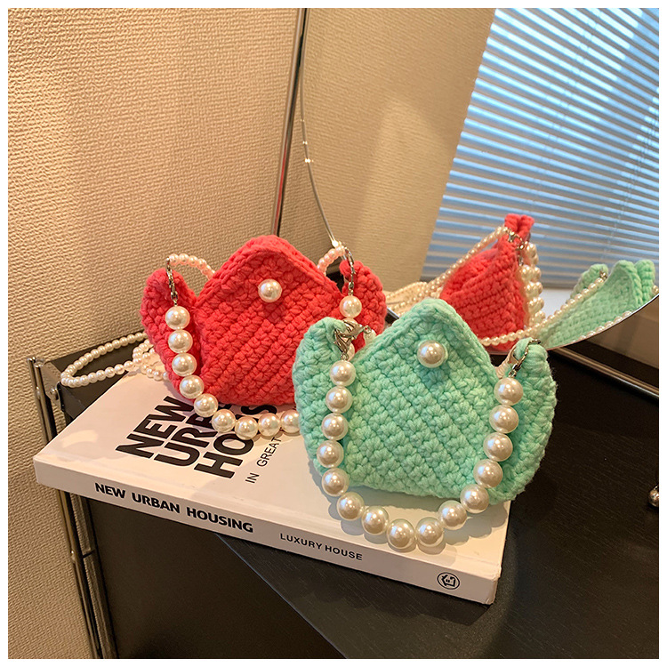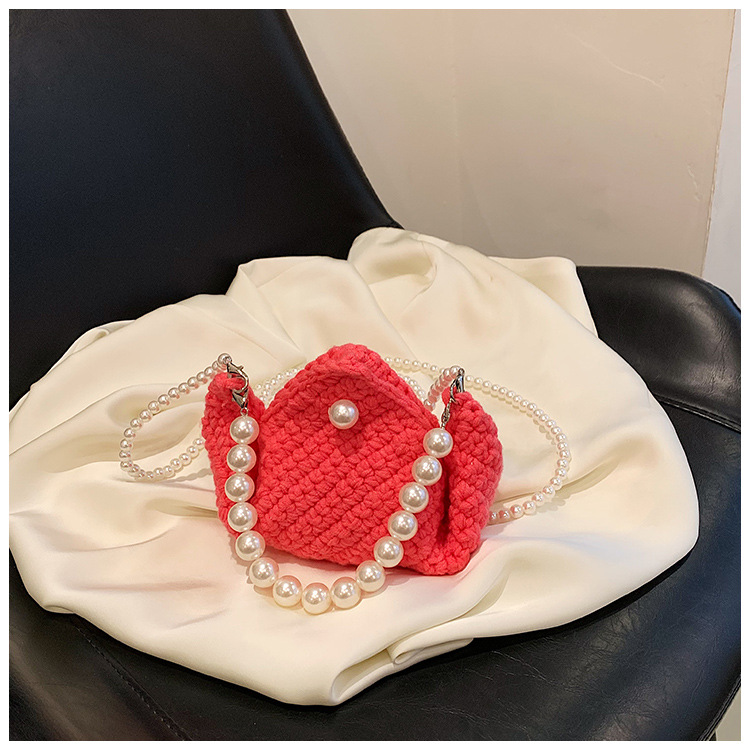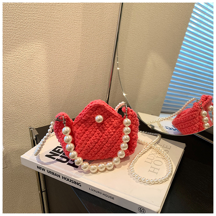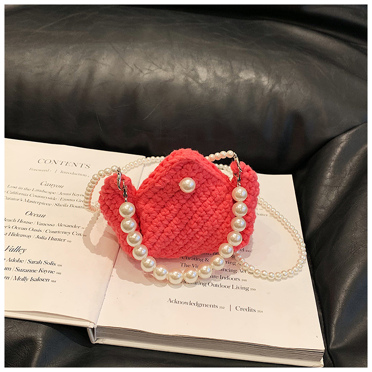 毛糸編みの小さいカバンの女の子の小銭入れの真珠は2023秋の新型の峰の赤い本の金の洋風を持ちます。