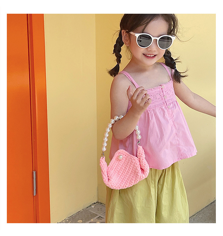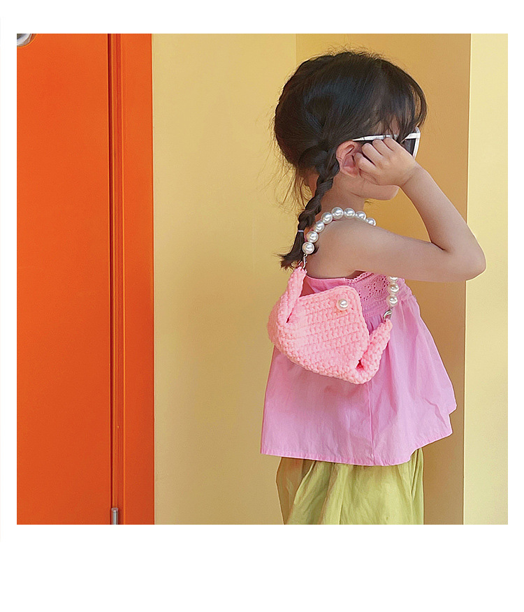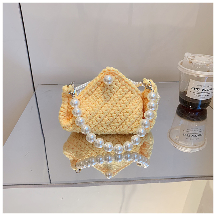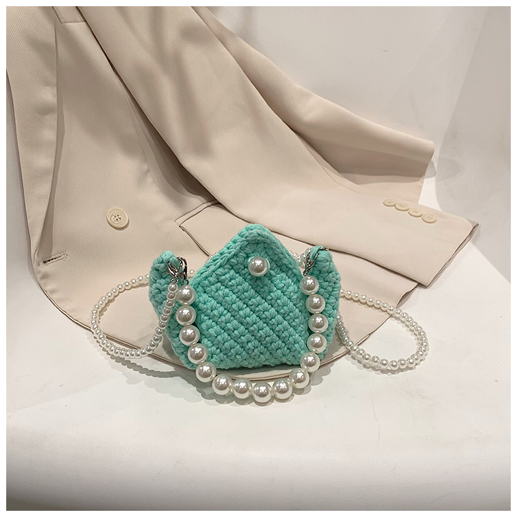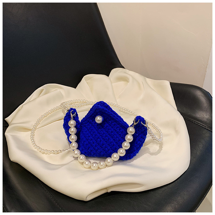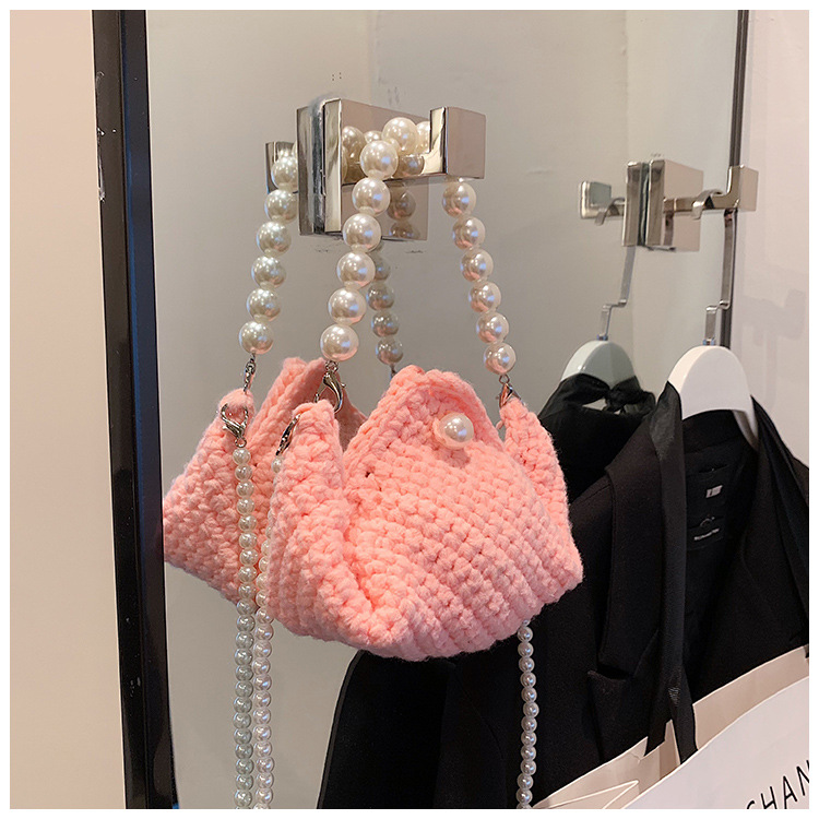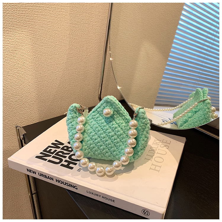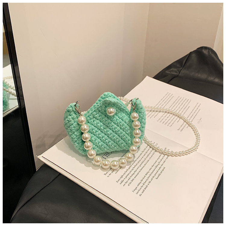毛糸編みの小さいカバンの女の子の小銭入れの真珠は2023秋の新型の峰の赤い本の金の洋風を持ちます。