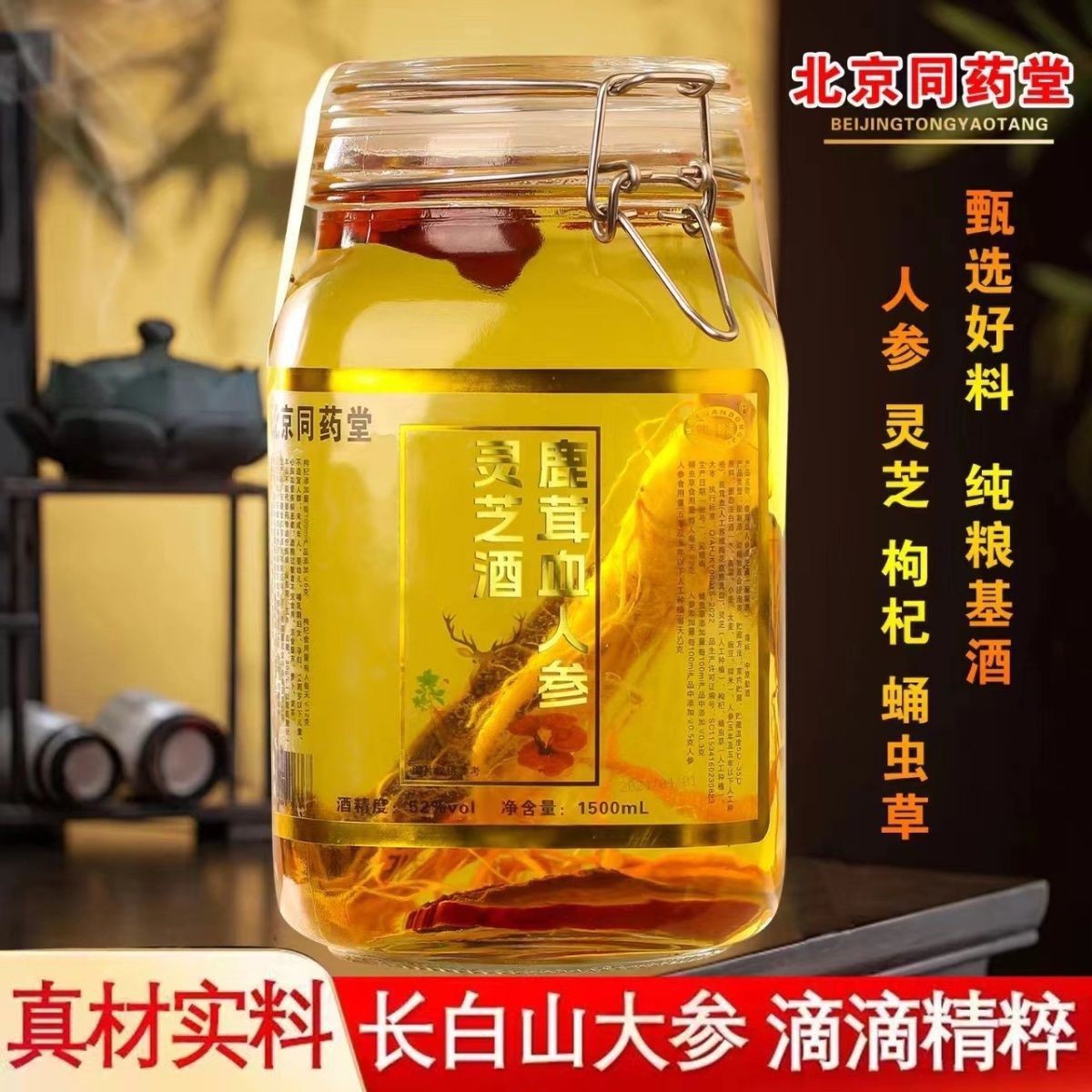 鹿茸、血参、霊芝酒、ガラス瓶入り、1.5kg瓶入り健康酒、1本から発送可能、滋養酒