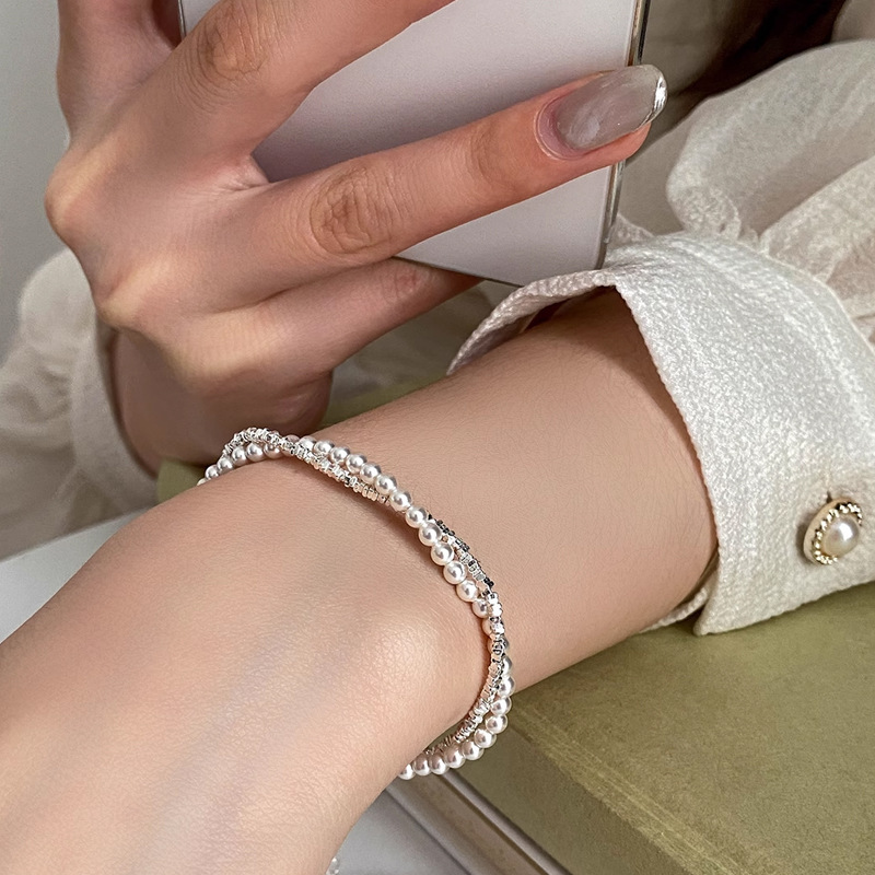 S925純銀二重巻き砕銀真珠ブレスレットファッション小衆はデザインの高級感を身に着けています。