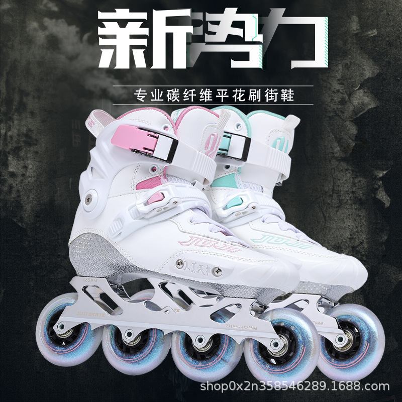 Juji白靴成人児童炭素繊維ローラースケート靴専門花式杭平花ブラシ街ローラースケート靴