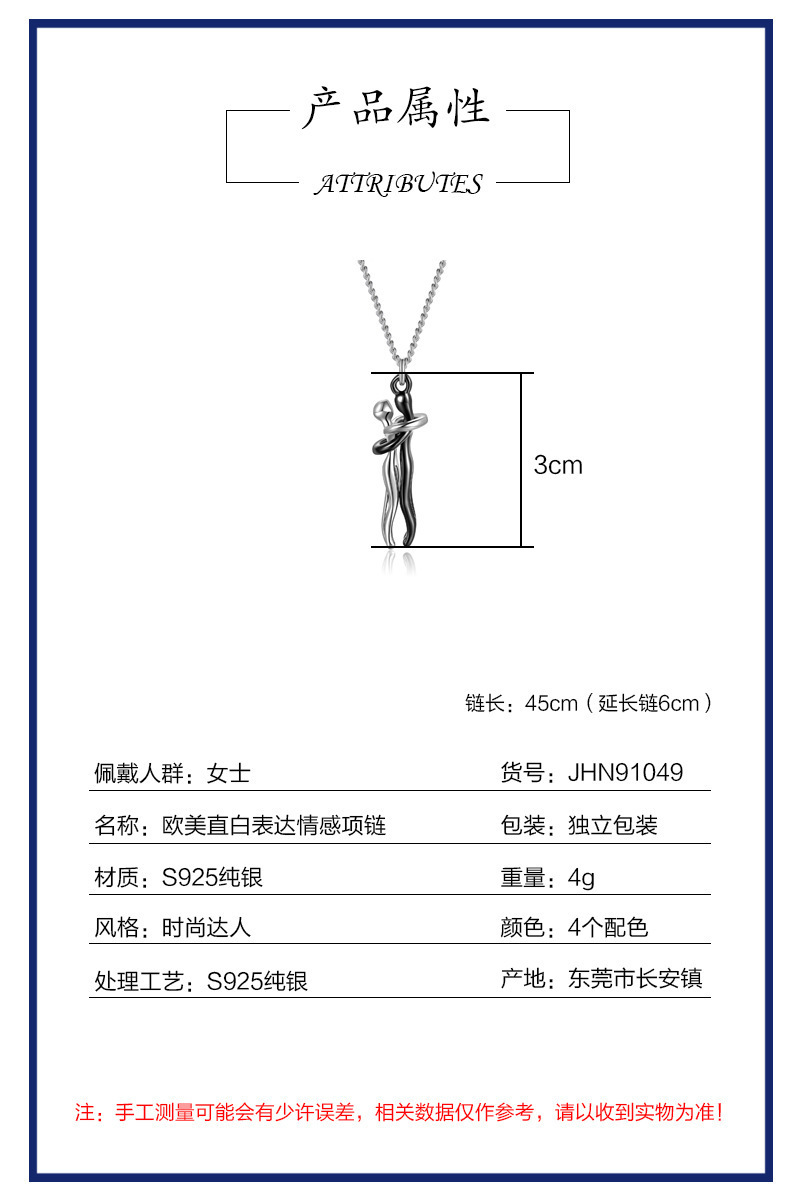 S925純銀抱擁カップルネックレス個性小人抱擁ペンダントネックレス経典表現感情アクセサリー