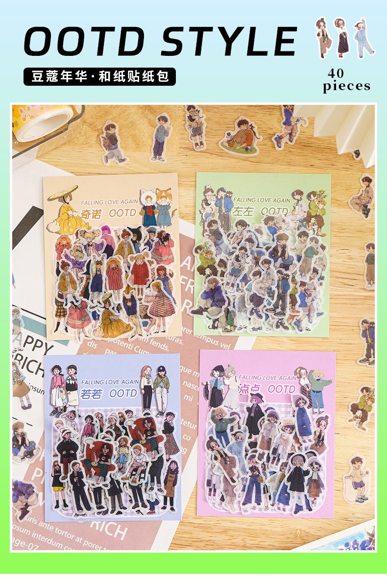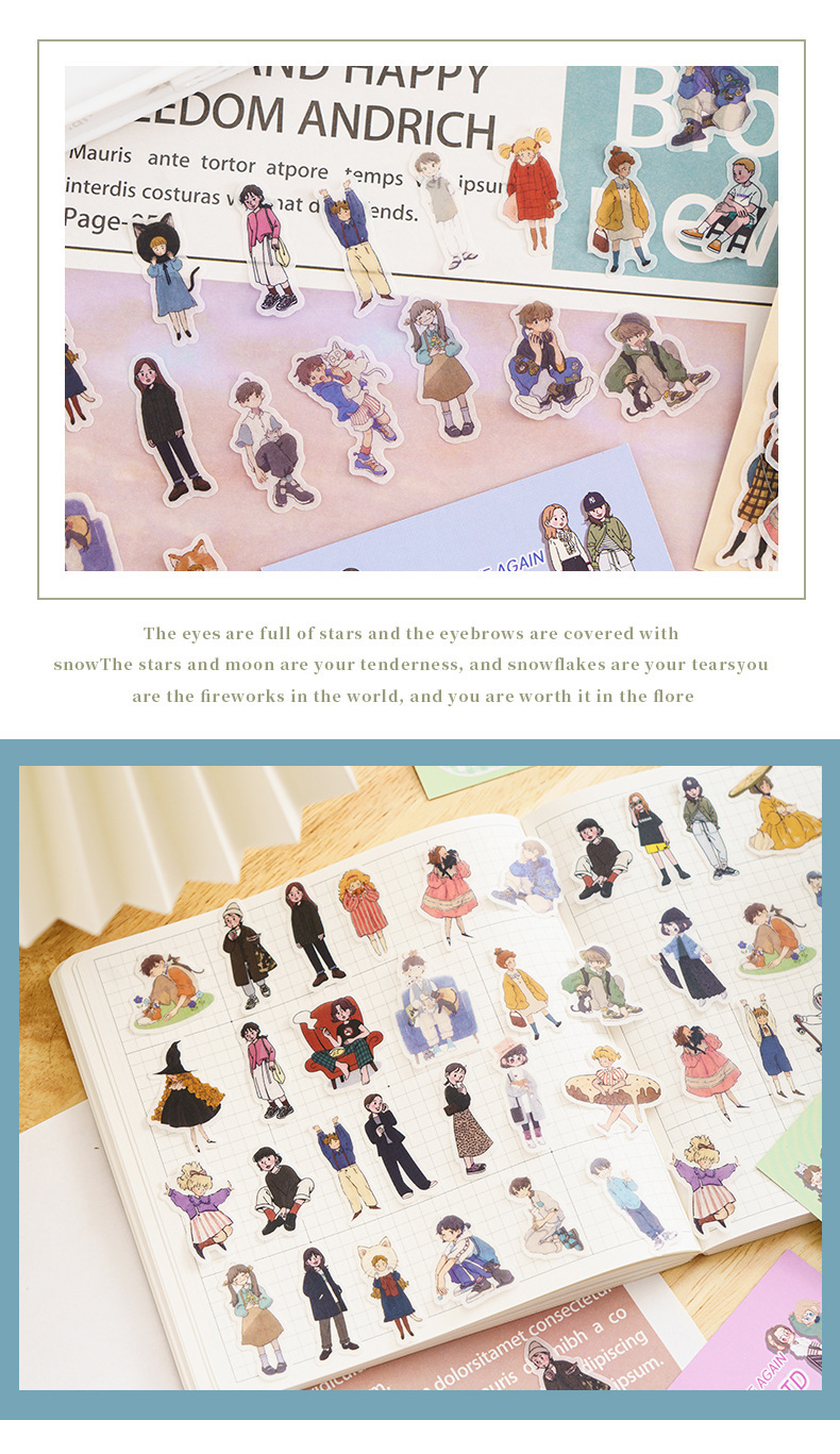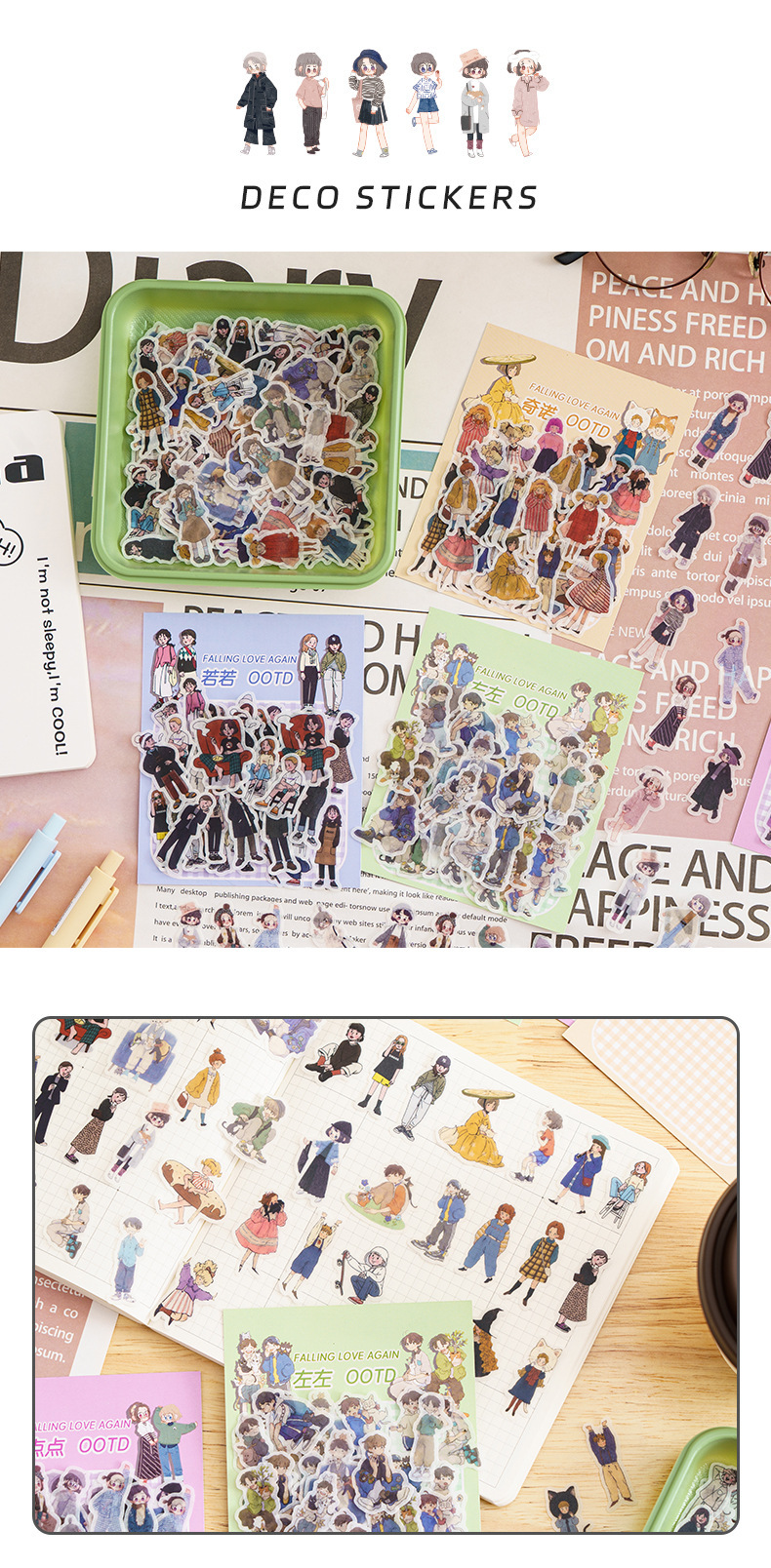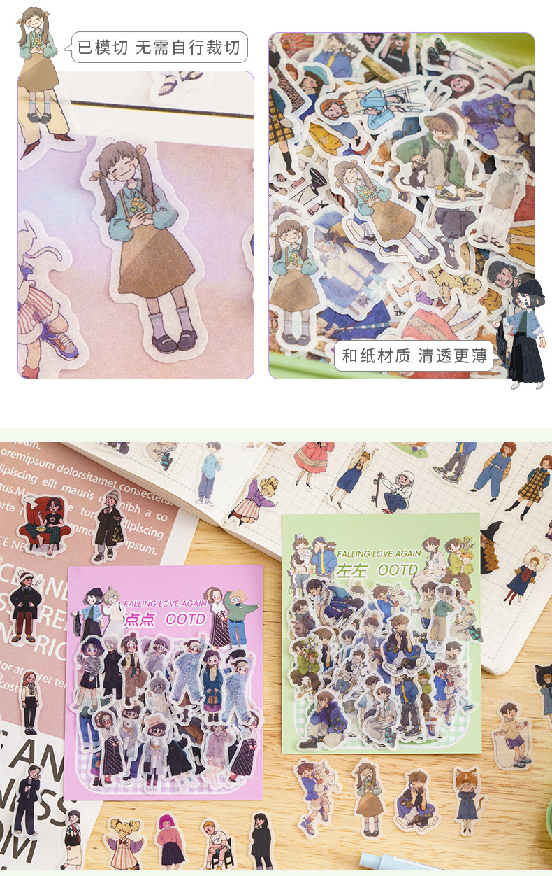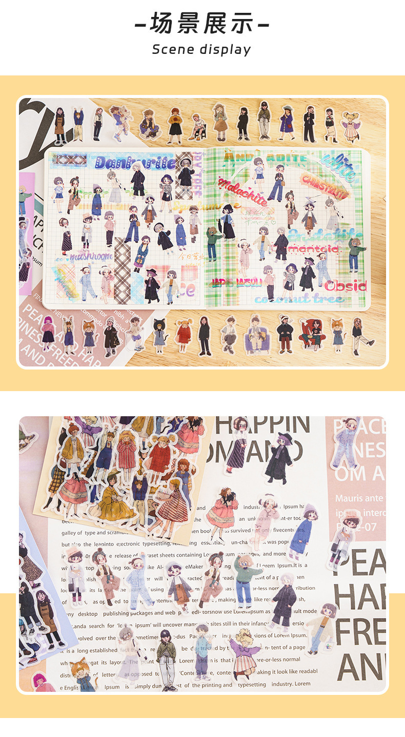 手帳シールバッグdiy少女かわいいカード貼り紙本キャラクターは手帳素材セット貼り絵を着ている