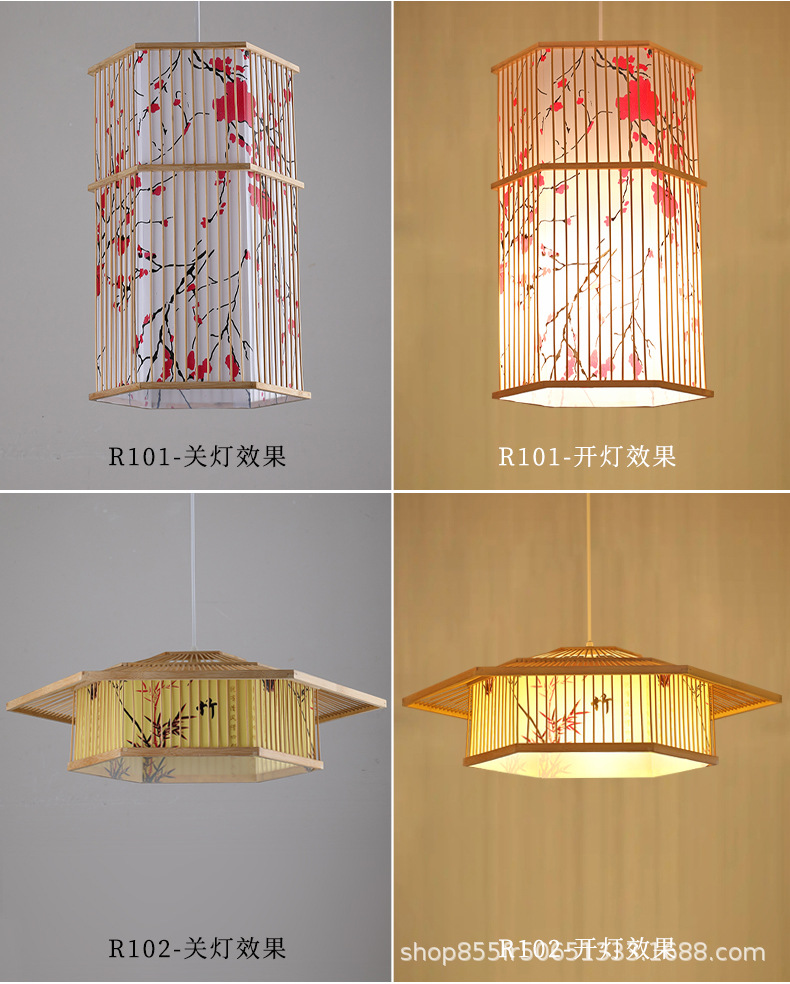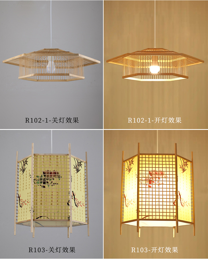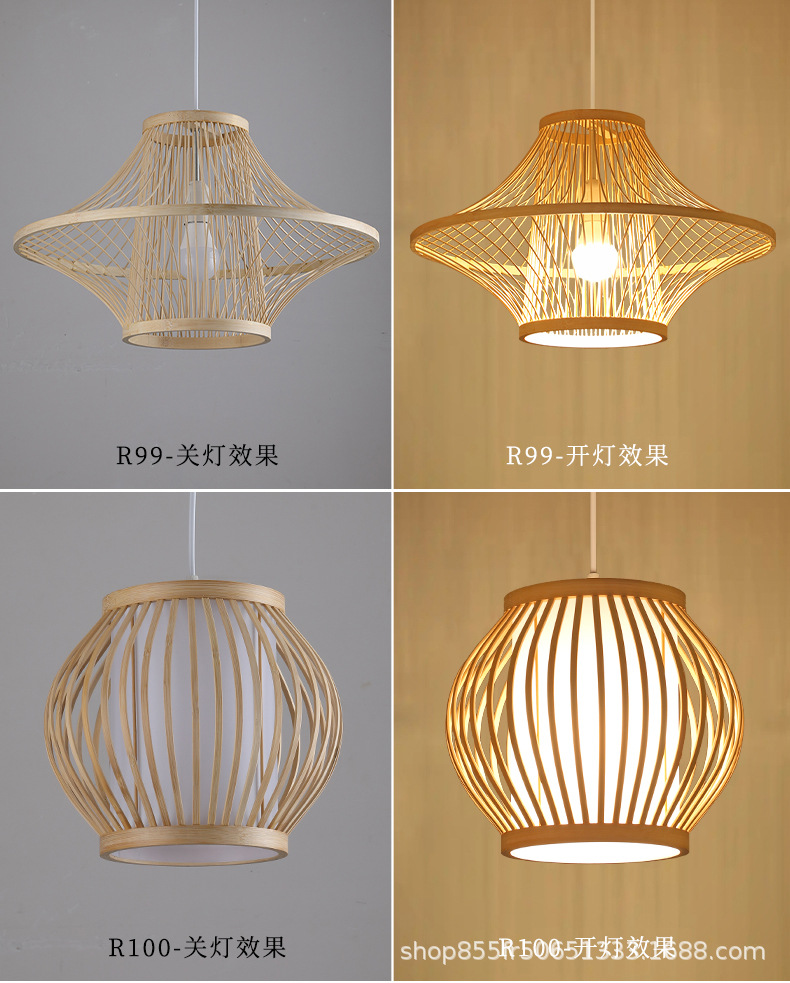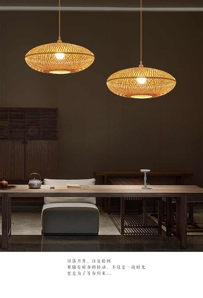 日本式禅意茶室民宿中国風レストラン竹芸竹編シャンデリア中国式火鍋店提灯芸術灯具