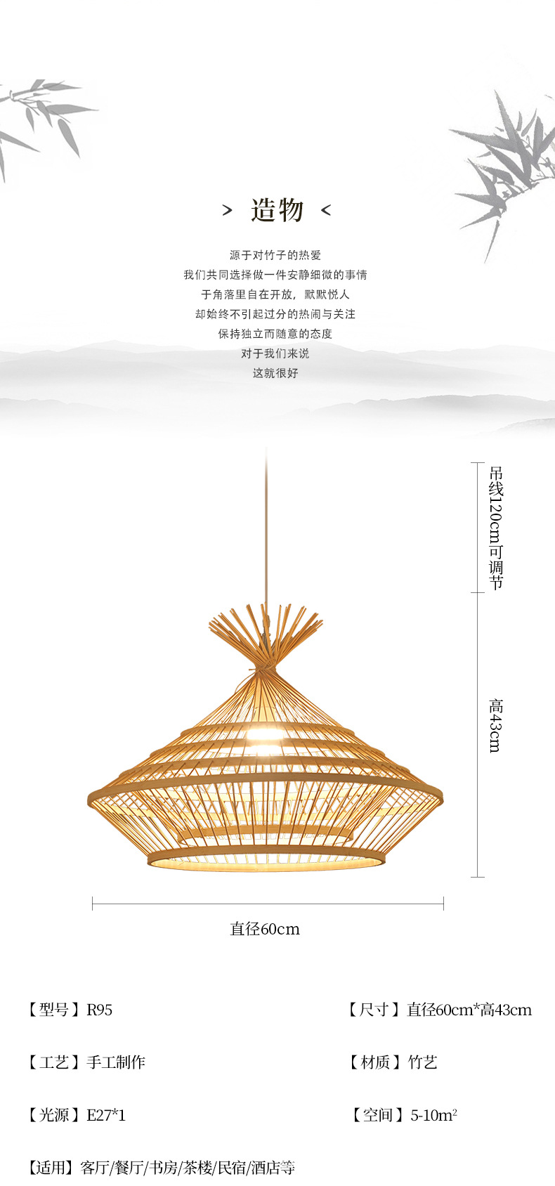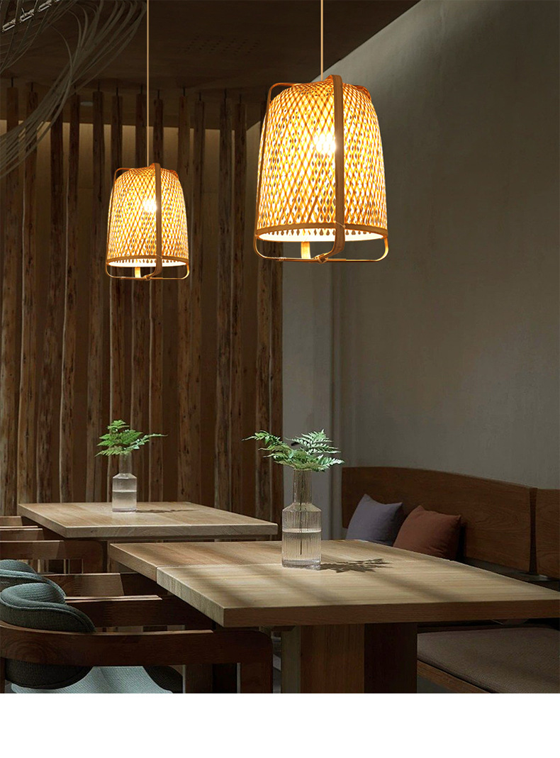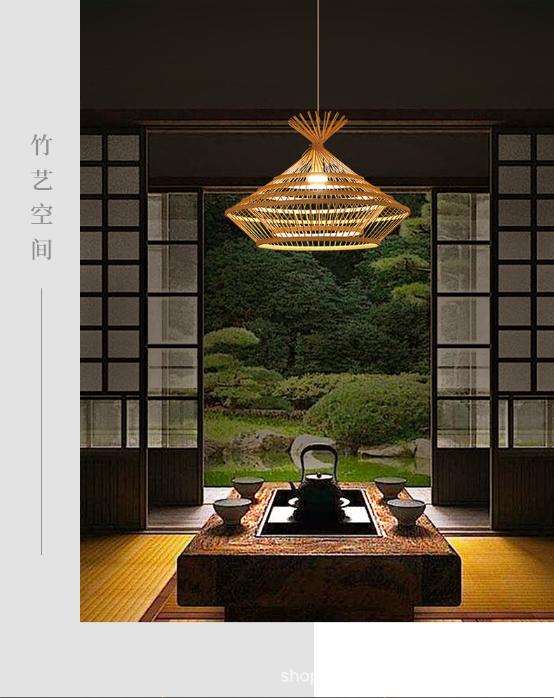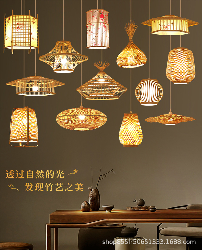 新中国式模造古創意竹編提灯茶室レストラン火鍋店日本式レトロ禅意竹芸シャンデリア
