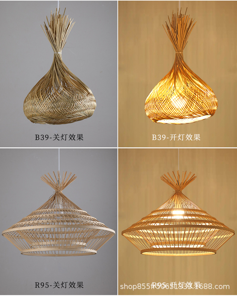 中国式竹芸シャンデリア竹編田園レストランホテル寝室ベランダ日本式提灯茶楼民宿照明器具吊り具