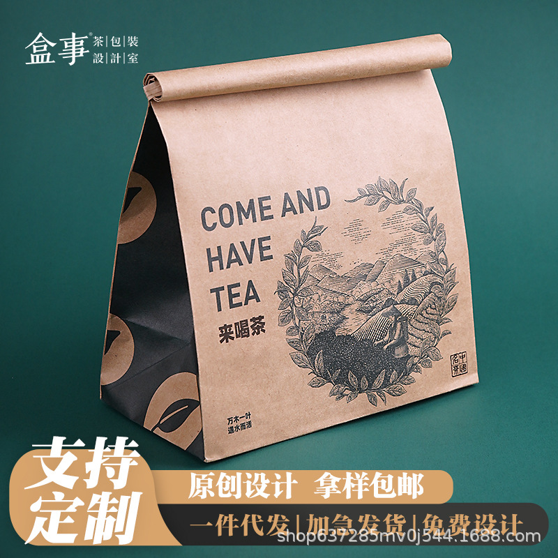 国風クラフト紙茶葉包装袋白茶緑茶紅茶散茶私室茶袋クラフト紙茶袋印刷ロゴ