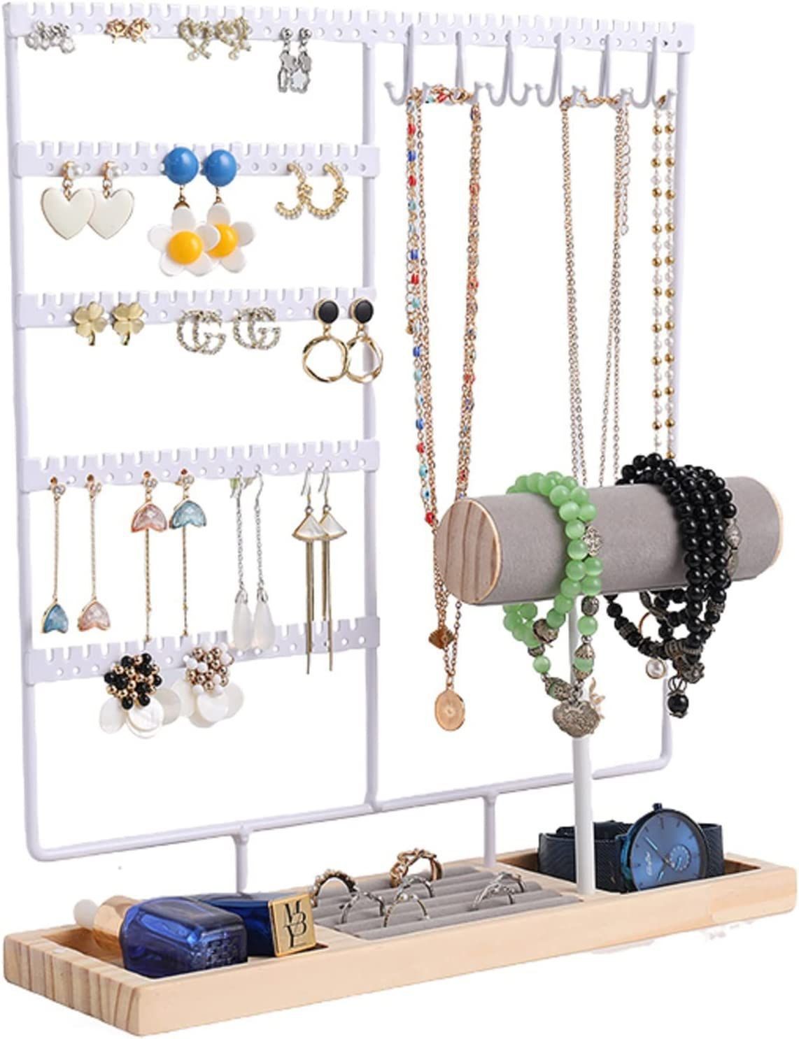 アマゾンの人気イヤリング展示棚は、木製のベースアクセサリーを取り外し可能にします。
