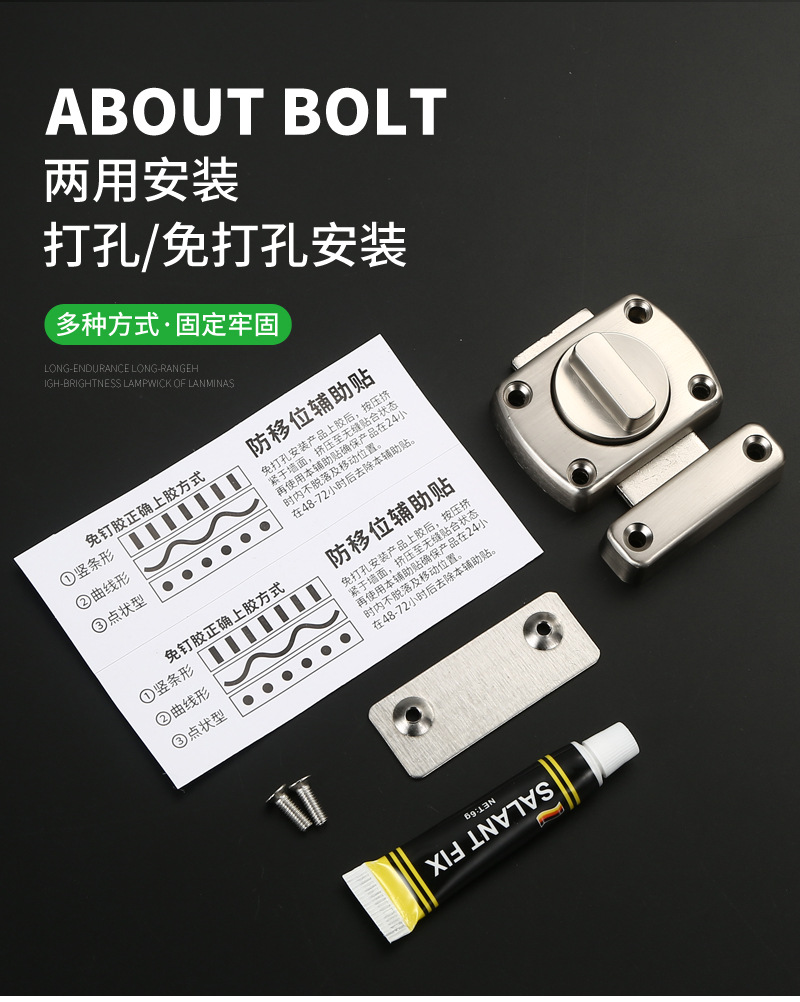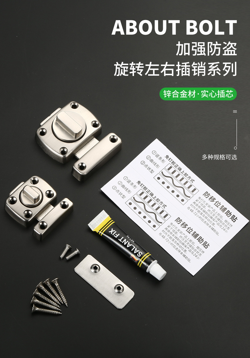 免打孔门插销门栓卫生间明装卧室门锁销子卡扣安全锁笼子锁扣门扣