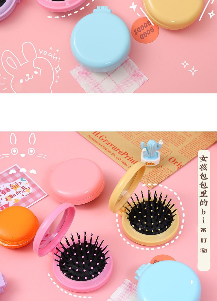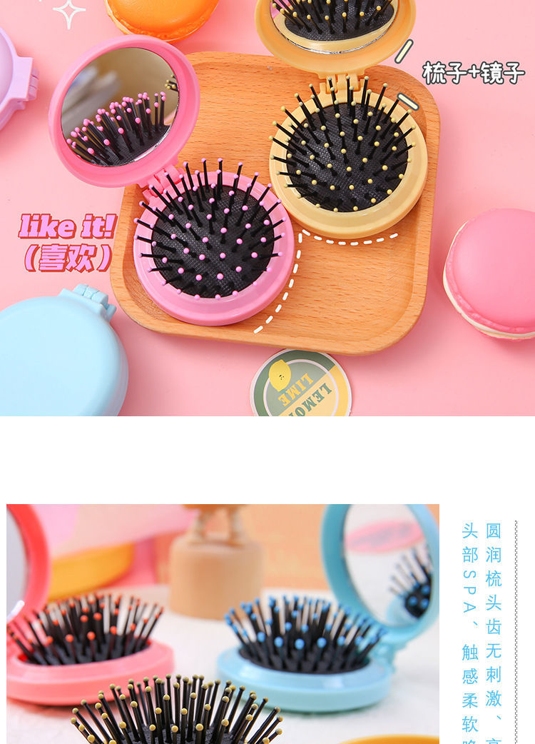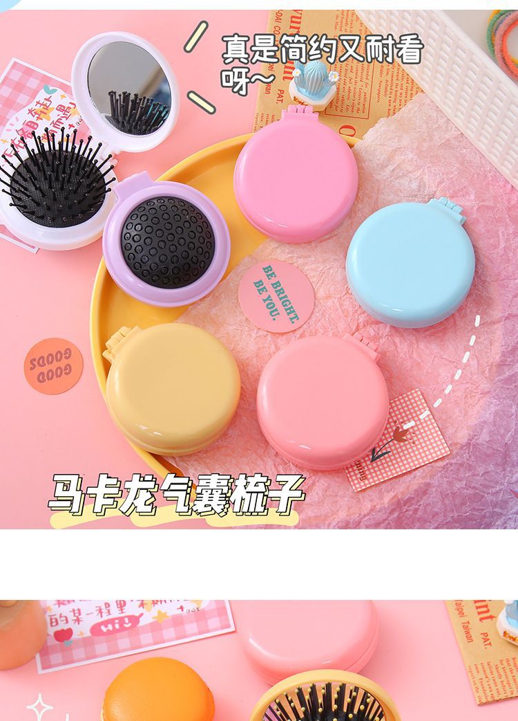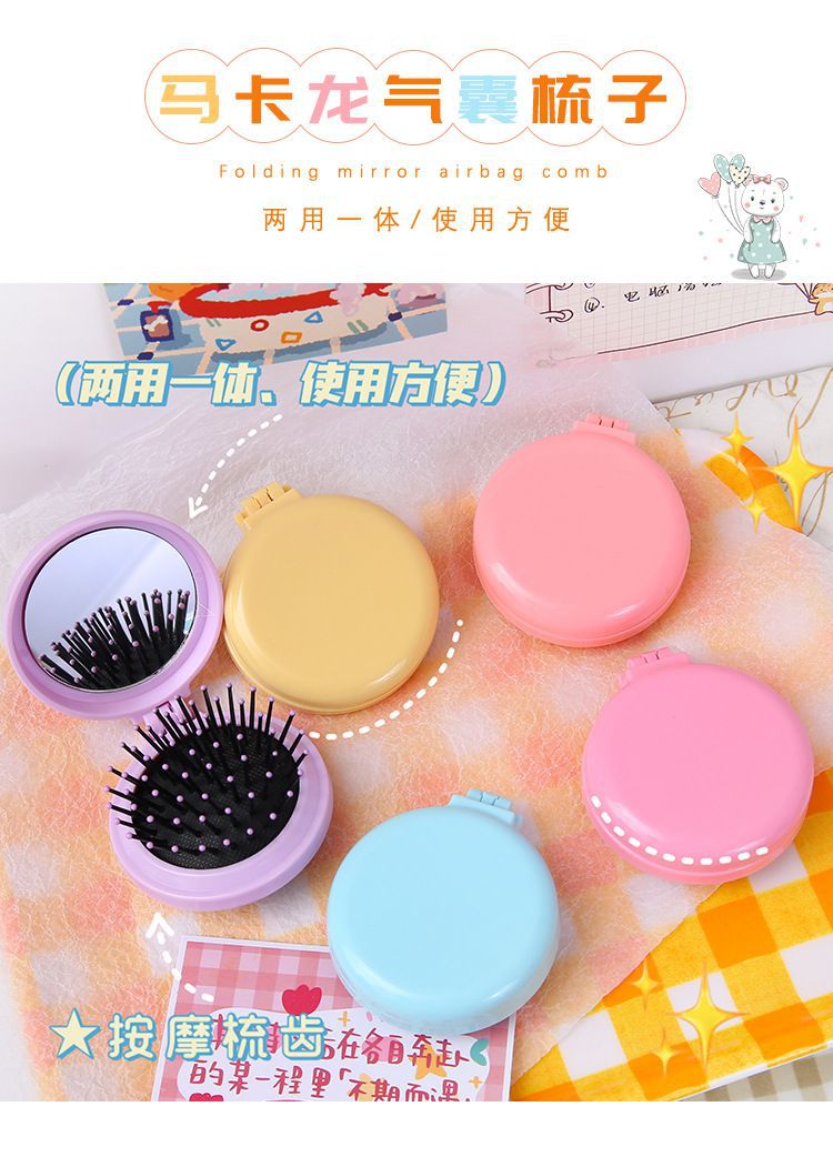 简约马卡龙气囊梳子纯色便携带镜子按摩梳女生糖果色美发折叠梳子