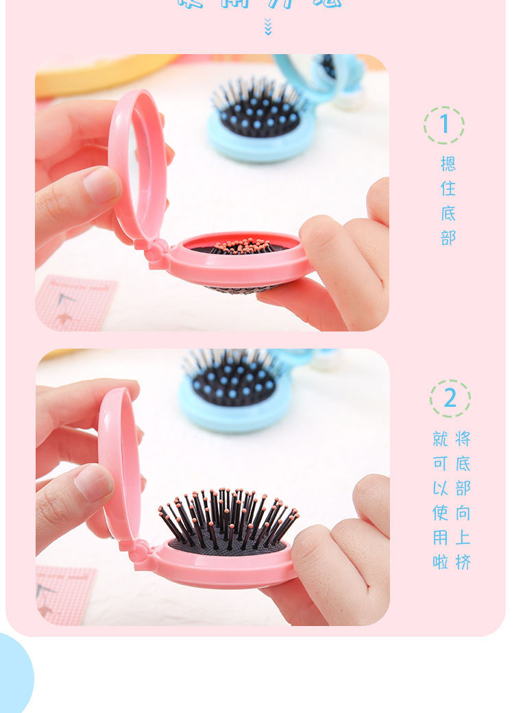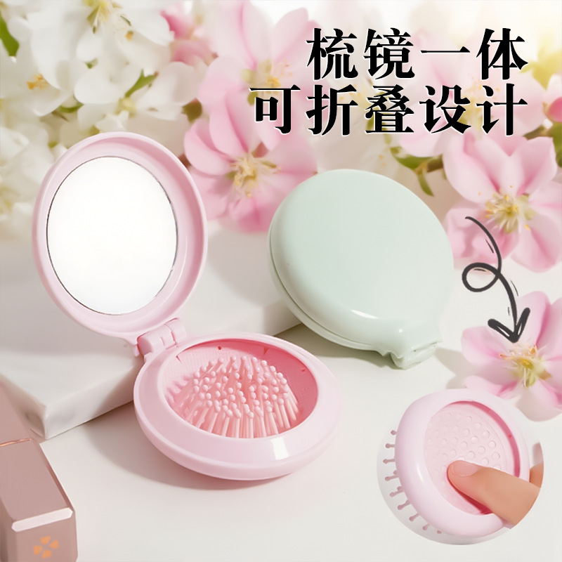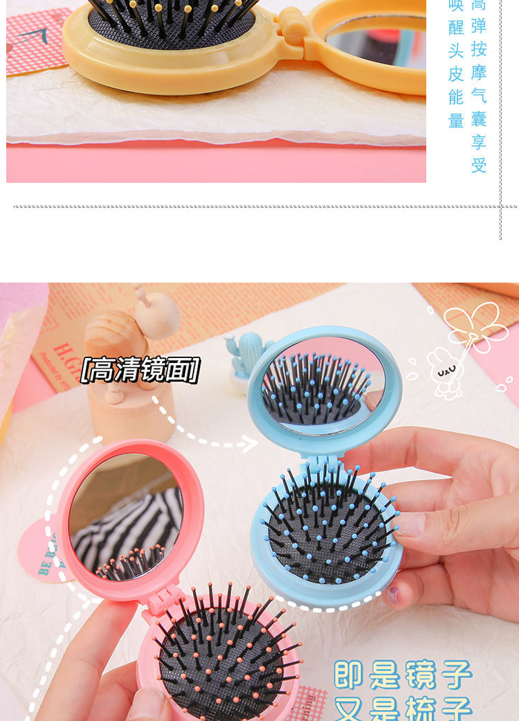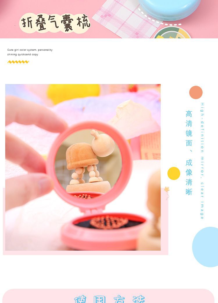 折り畳みエアバッグ小櫛化粧鏡付きDIYかわいい少女エアクッション頭部マッサージ櫛鏡一体卸売り