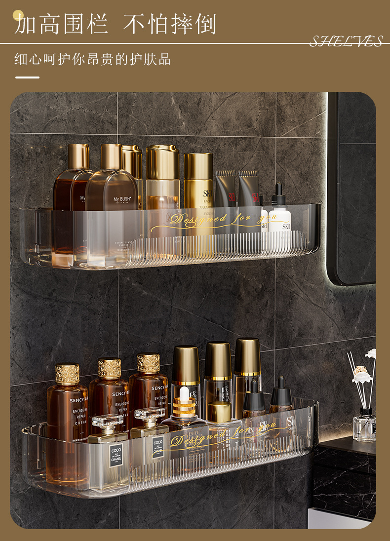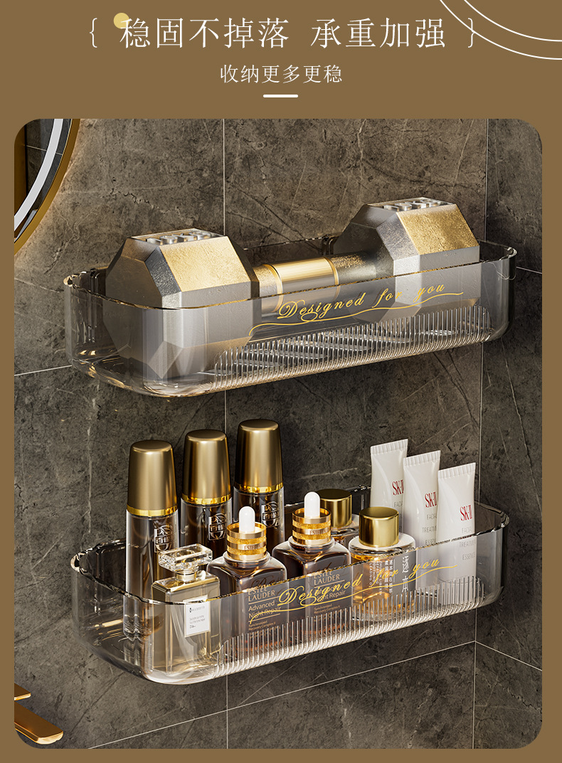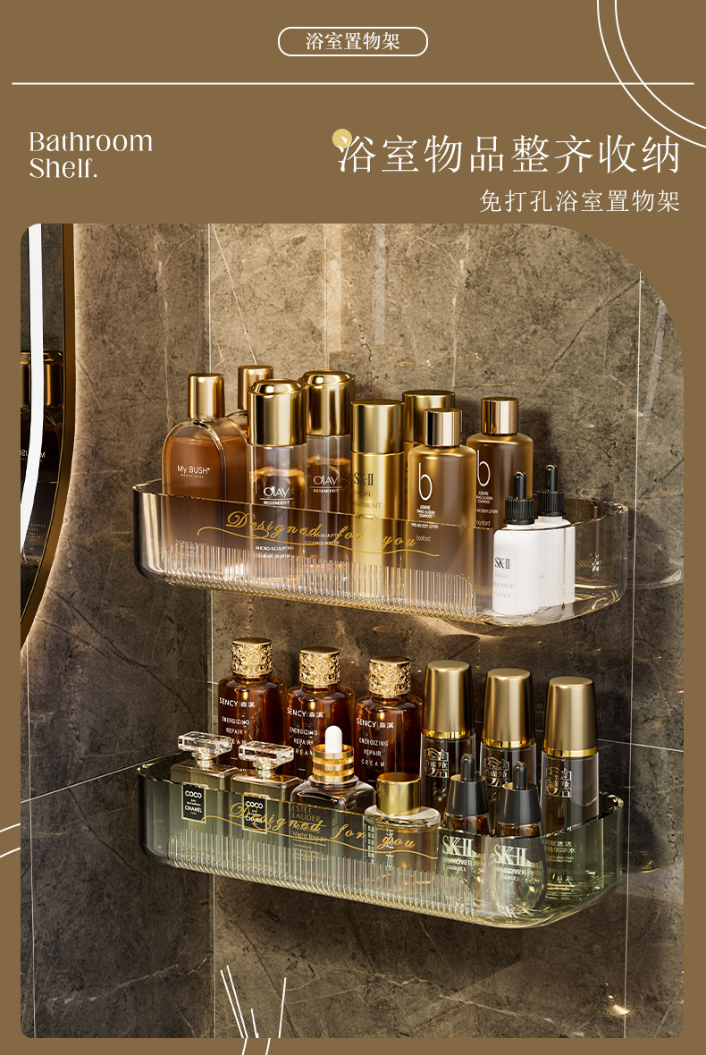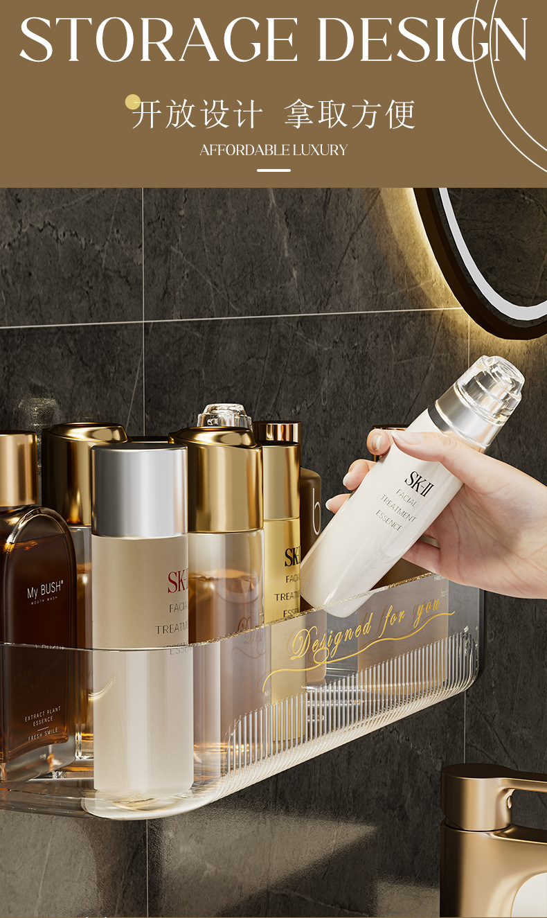 • 商品名称:轻奢风无痕壁挂镂空厨卫洗漱化妆品加高置物架--透明绿