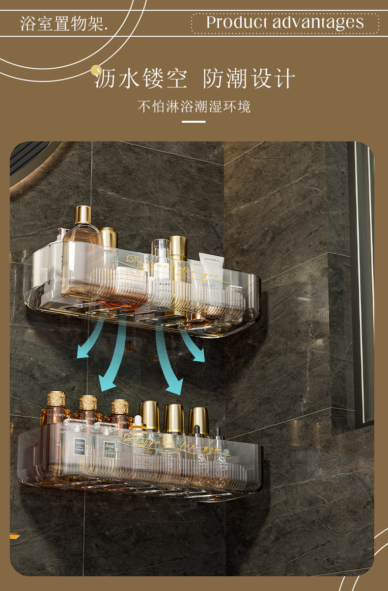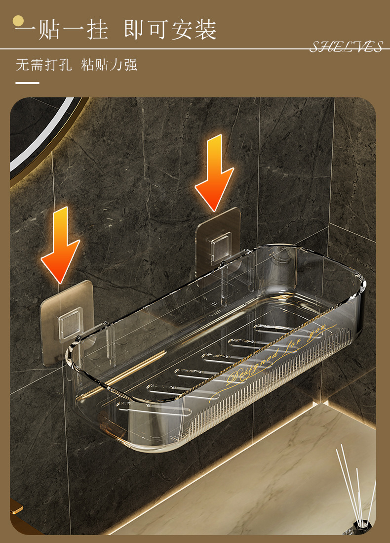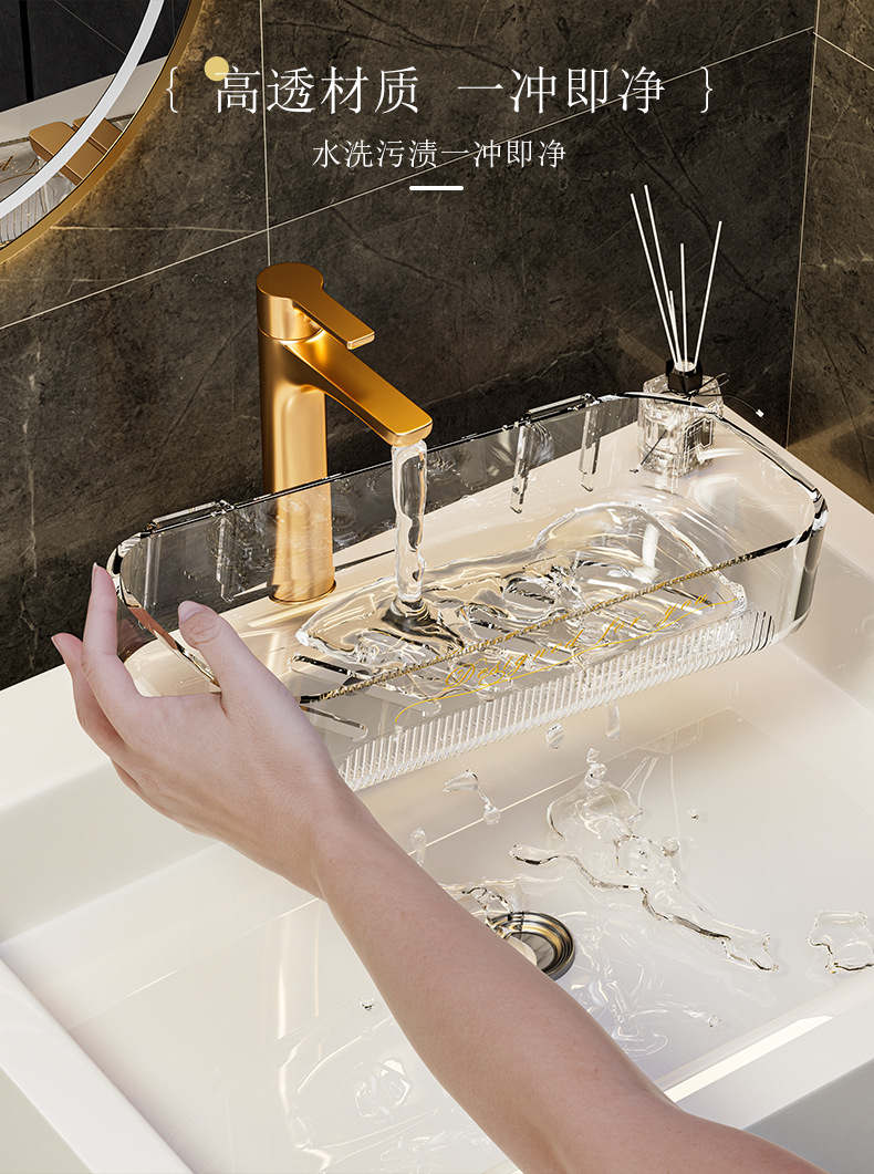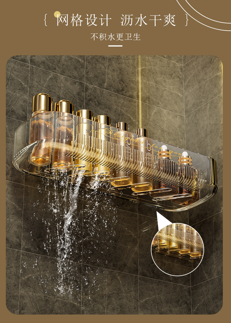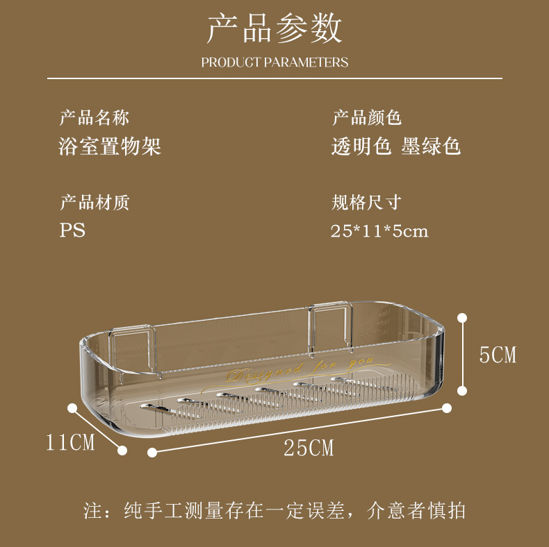 • 商品名称:轻奢风无痕壁挂镂空厨卫洗漱化妆品加高置物架--透明绿