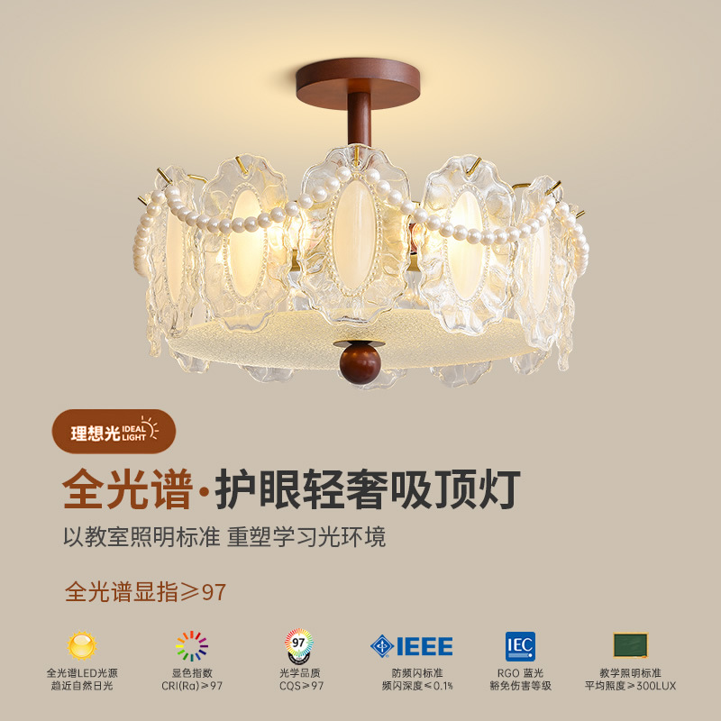 中世スタイルの寝室ランプガラスパールレトロアメリカンクリスタルランプリビングルーム 2025 新しいフレンチライト高級シーリングランプ