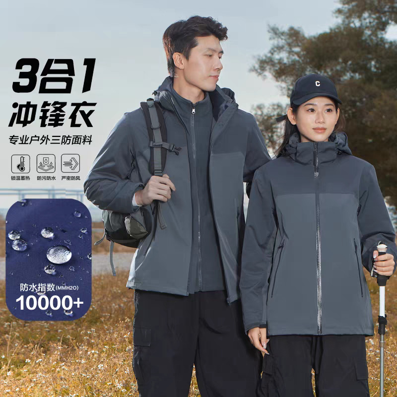 新款冲锋衣三合一两件套可拆卸男女款登山服热封压胶工作服可logo
