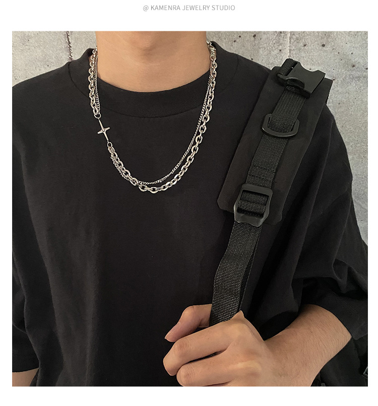 高街ヒップホップクロス二重チェーンネックレス男潮デザイン感小衆高級感鎖骨チェーンアクセサリー