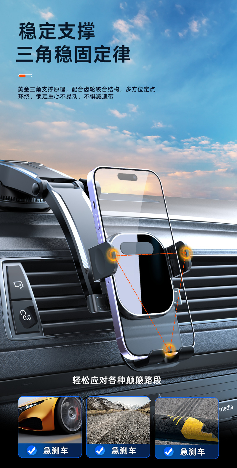 产品名称:按压式车载手机支架