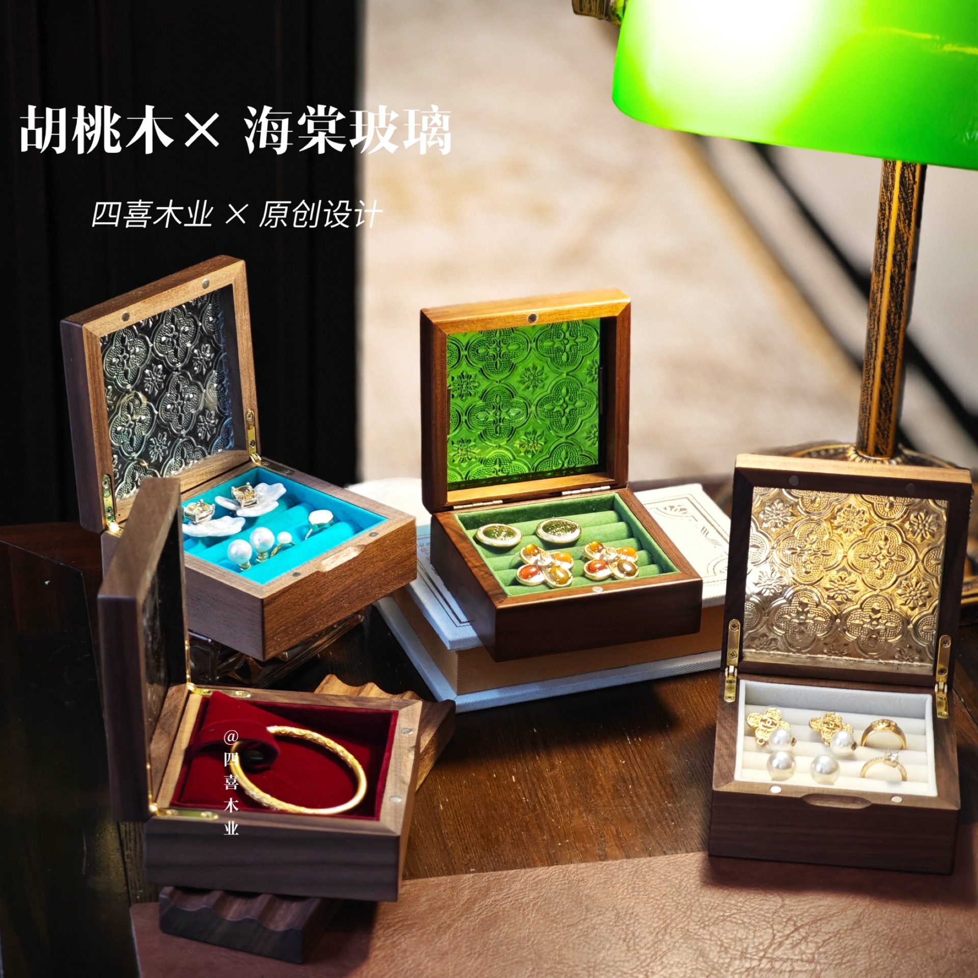 四喜木業木質アクセサリーケース実木収納ケースアクセサリーケースアクセサリーネックレスアクセサリーレトロベゴニアガラス