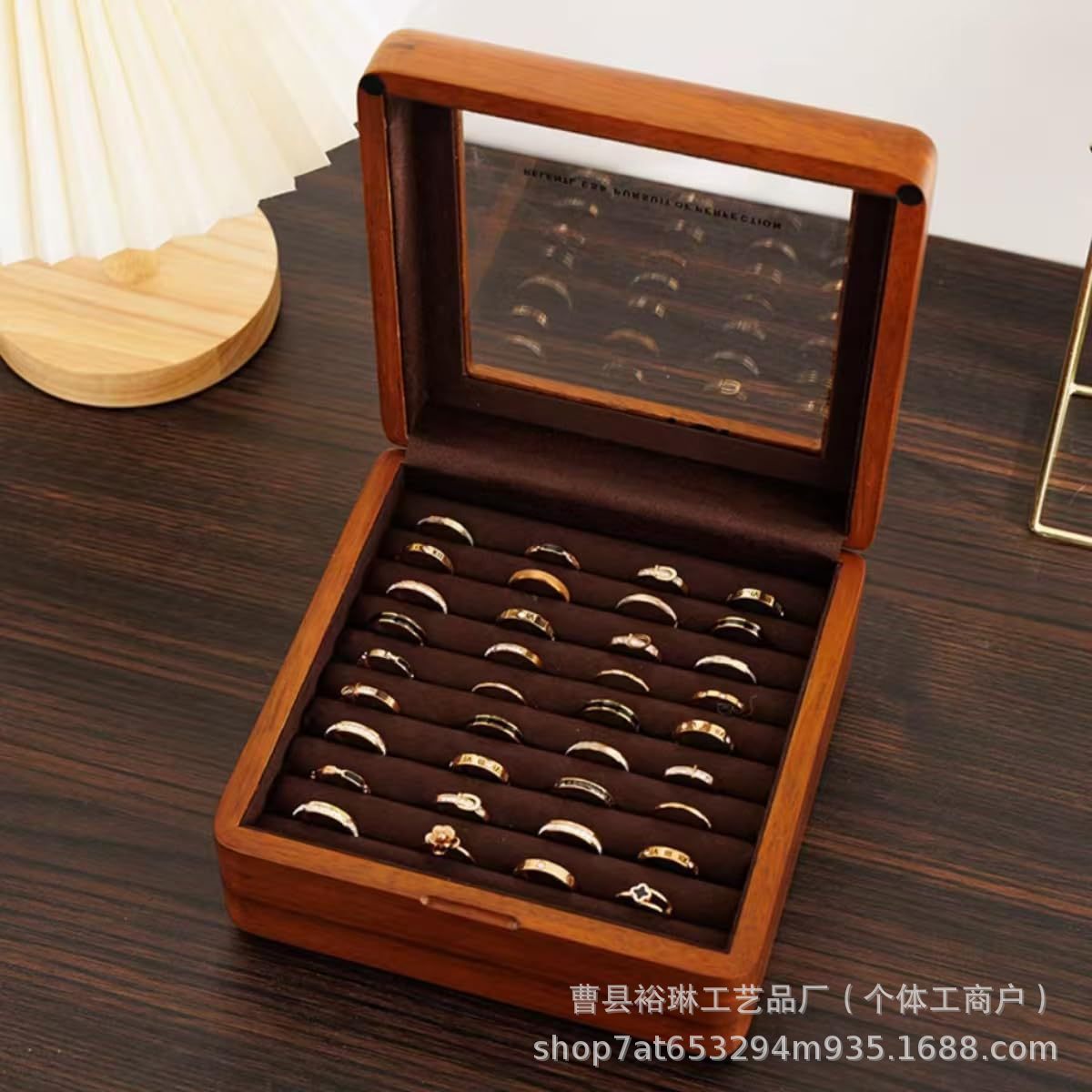 四喜木業木質アクセサリーケース実木アクセサリーケースガラス指輪ネックレス復古指輪ケースケース胡桃木